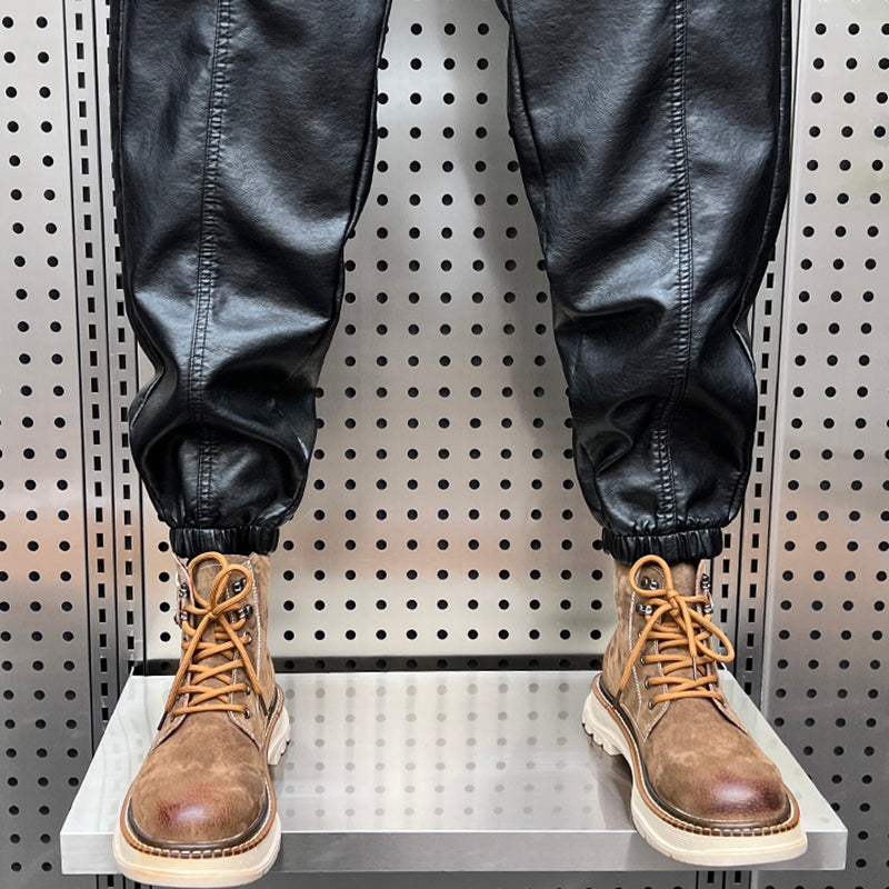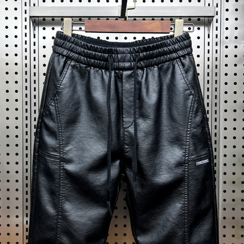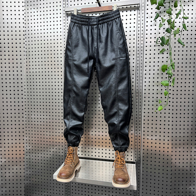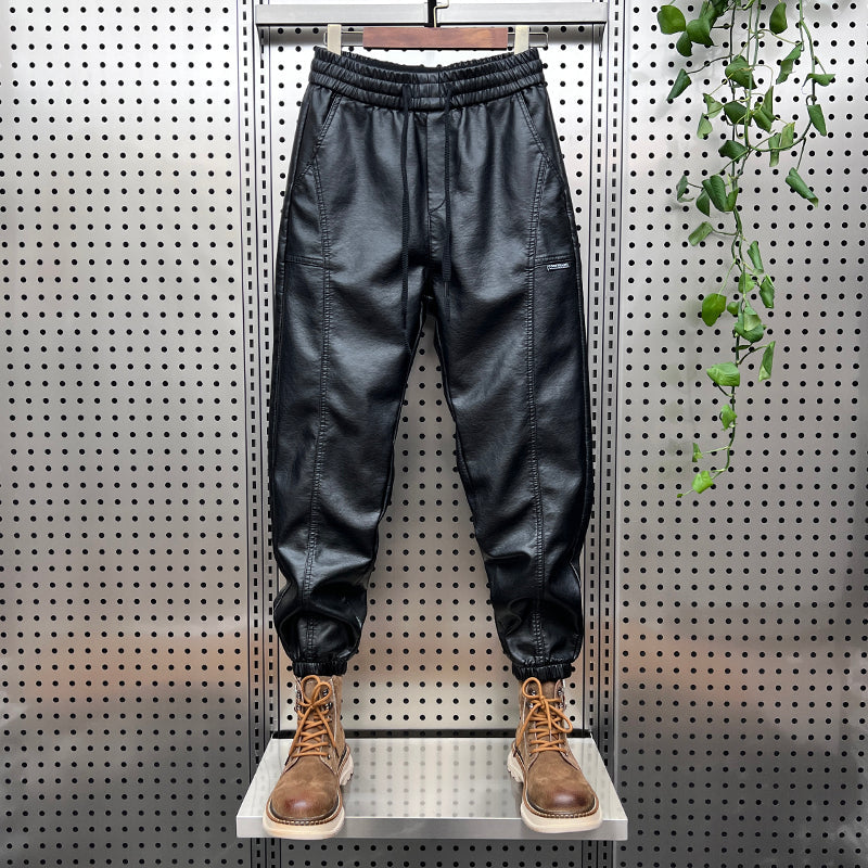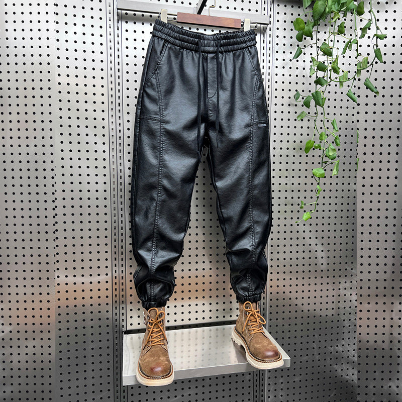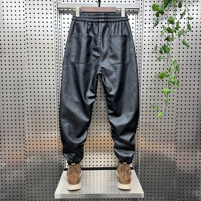 Men's Hip Hop Harem Pants Joggers PU Stitching Pants Elastic Waist Baggy Drop Crotch Sweatpants