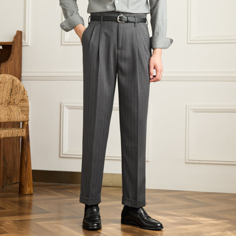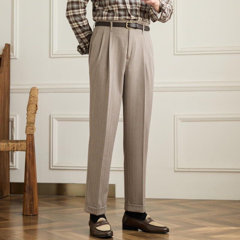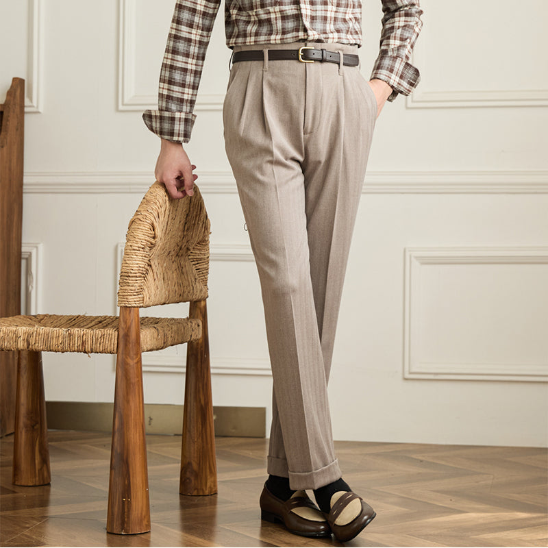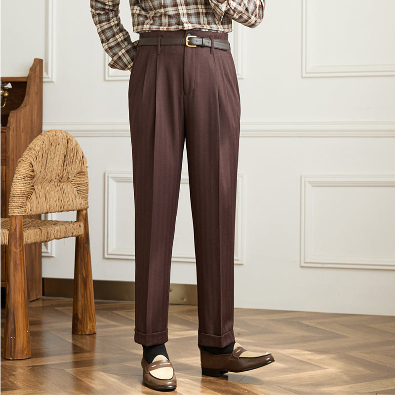 Men's Autumn And Winter Wool High Waist Straight Pants