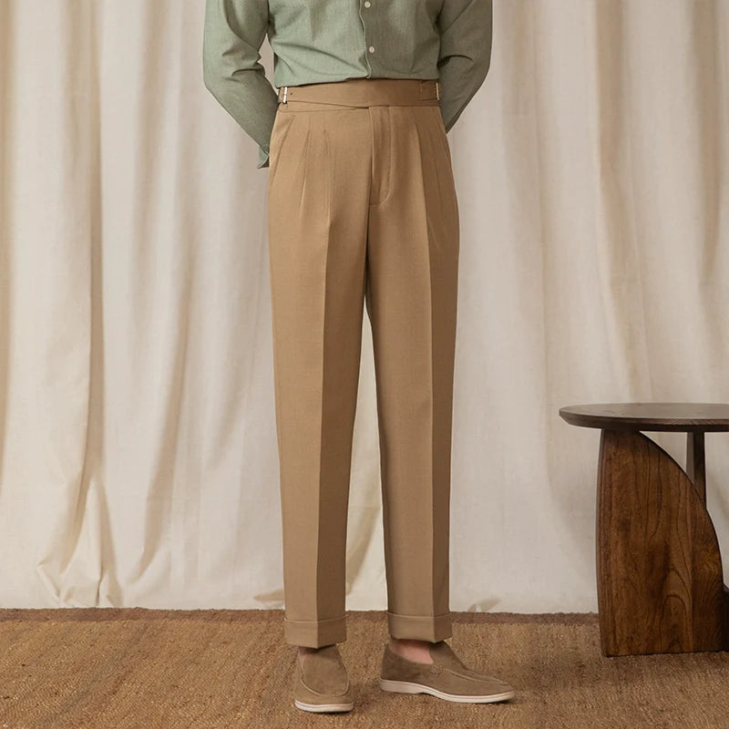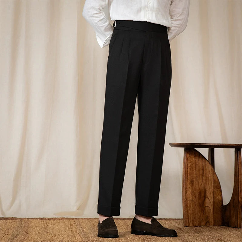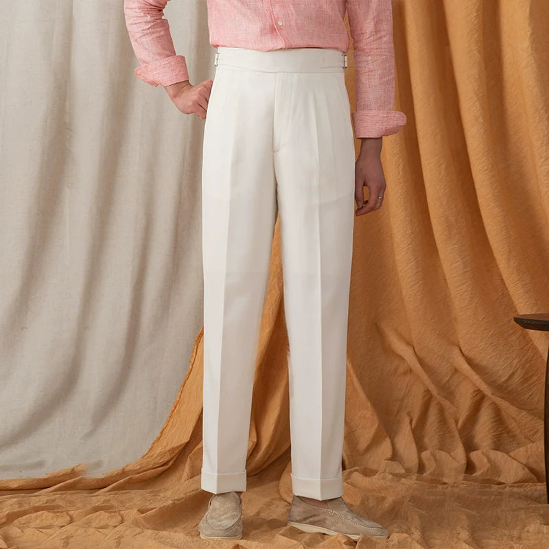 Mens Business Mid-high Waist Casual Trousers