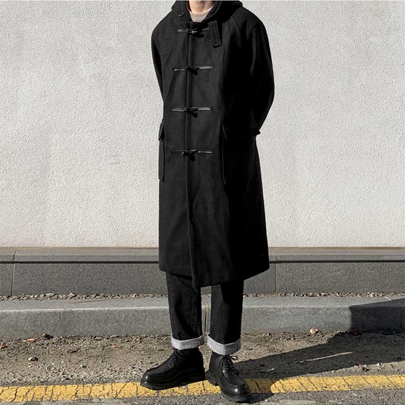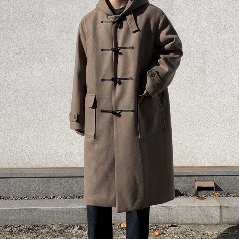 Casual Hooded Lapel Horn Button Loose Windbreaker