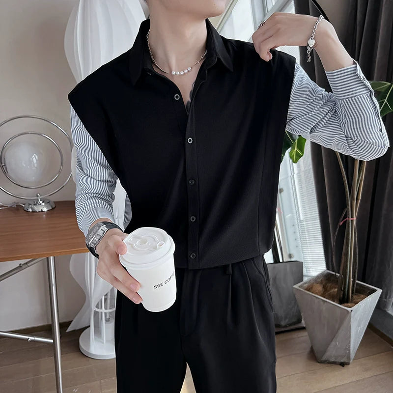 Men's Casual Loose Striped Shirt Sweater Vest Cardigan Jacket