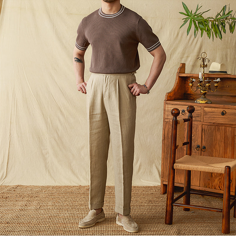 Contrast Color Round Neck Casual Hollow Shirt