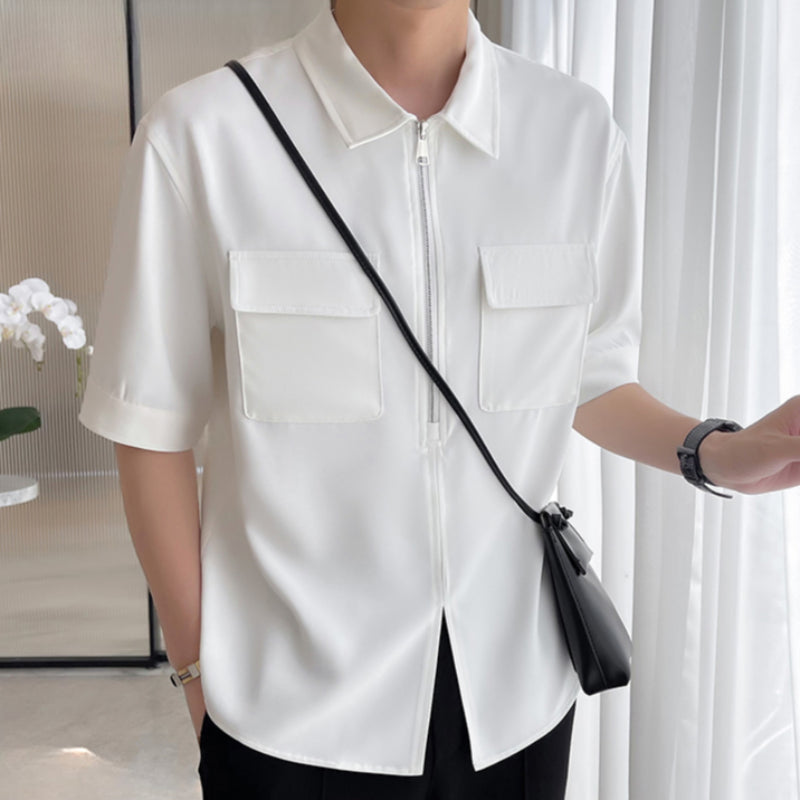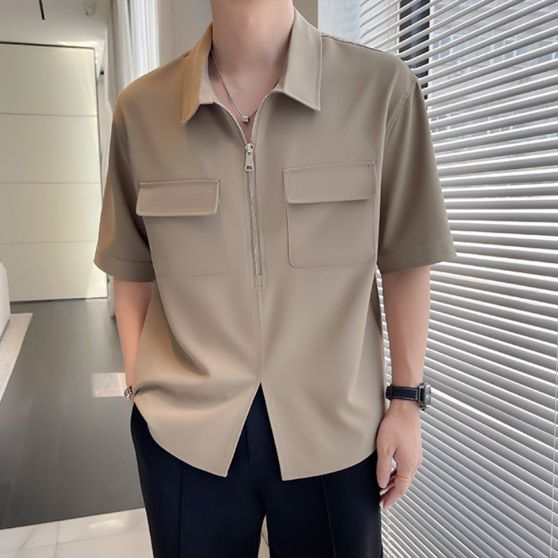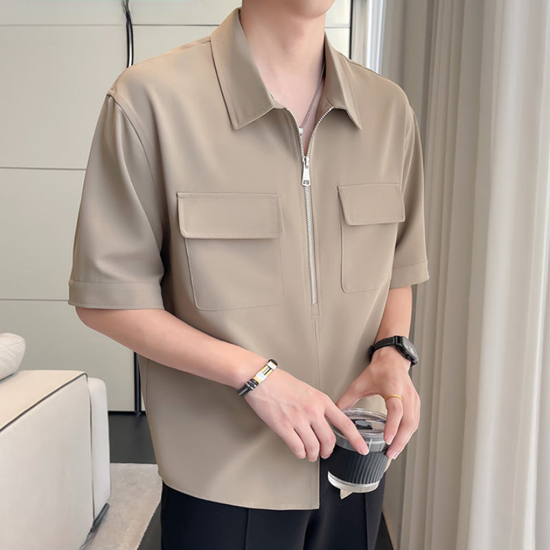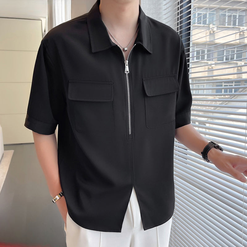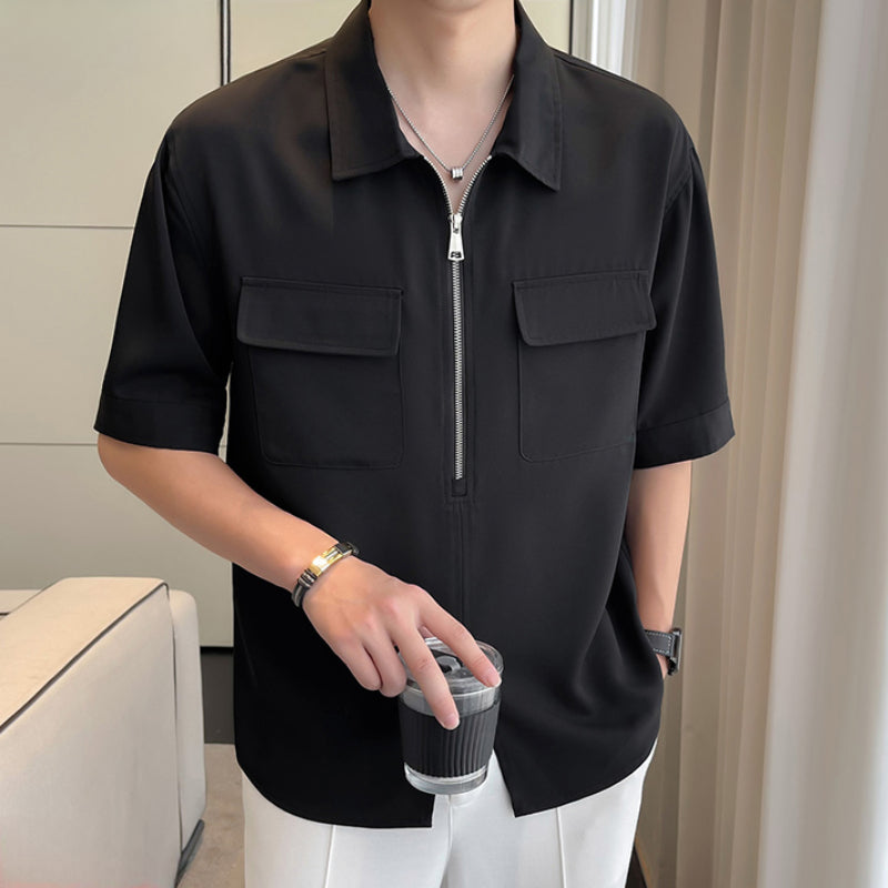 Men's Half-zip Ice Silk cool Short-sleeved Shirt