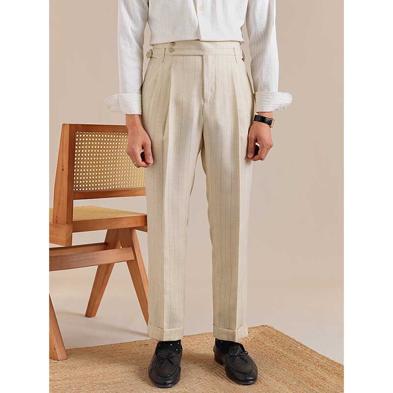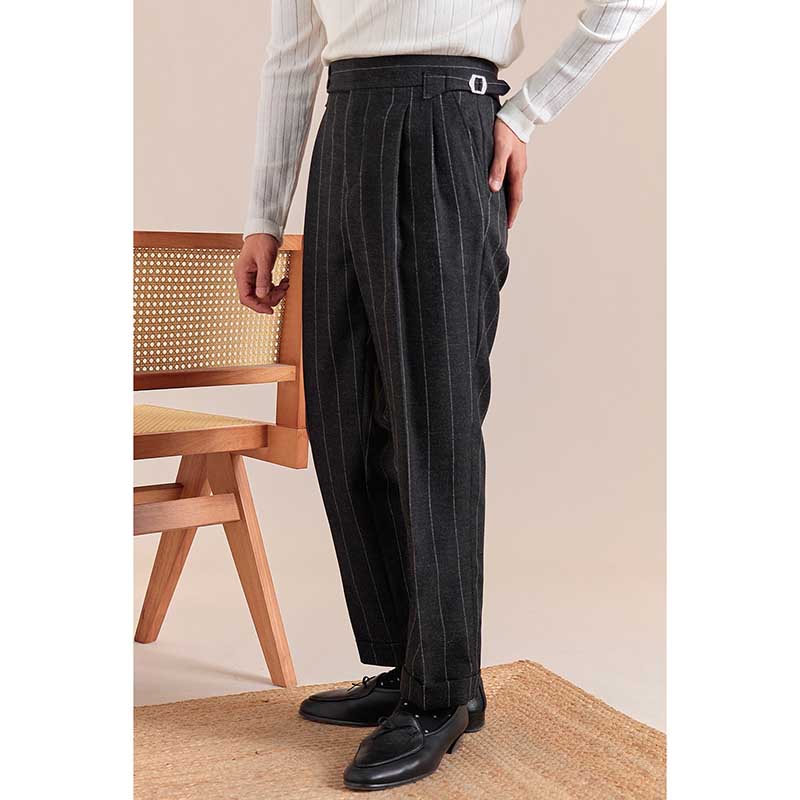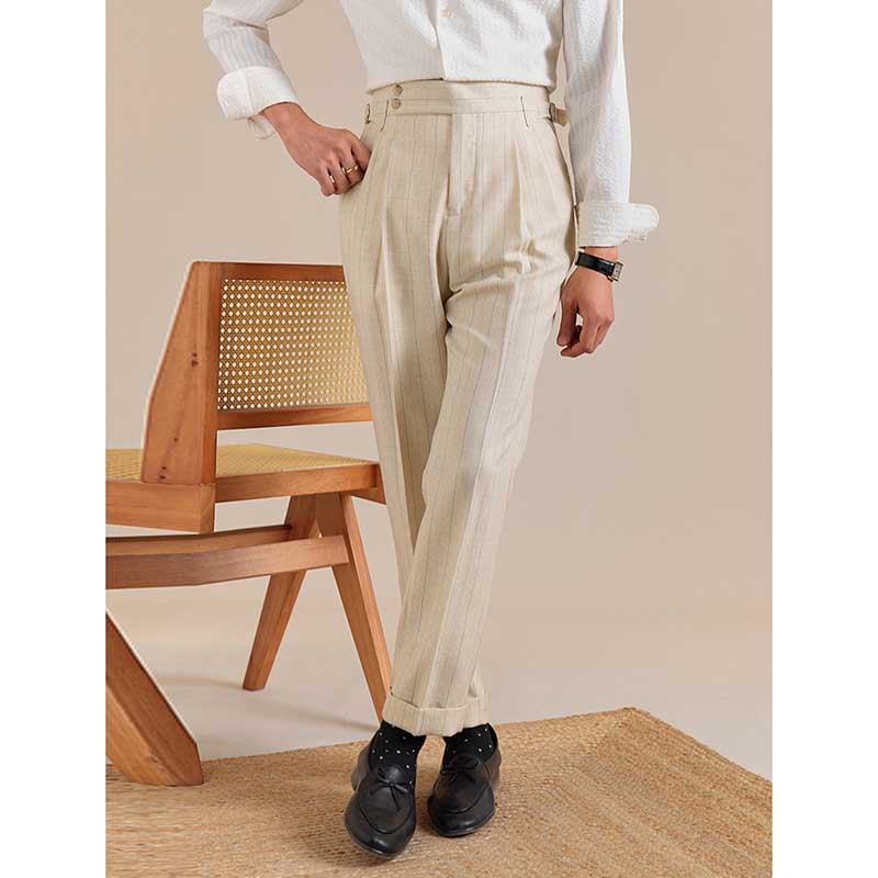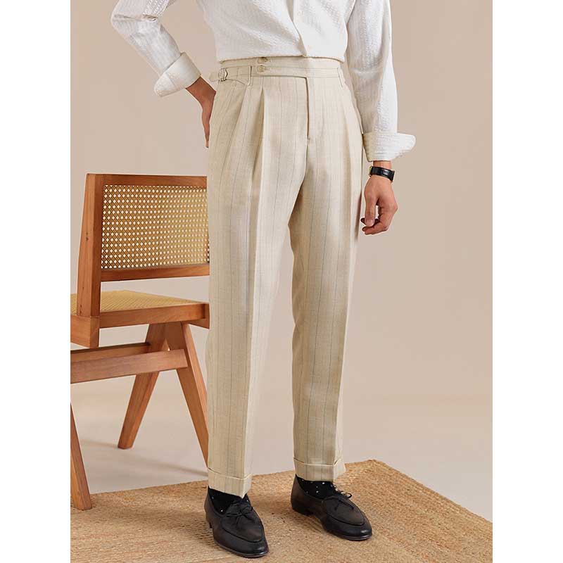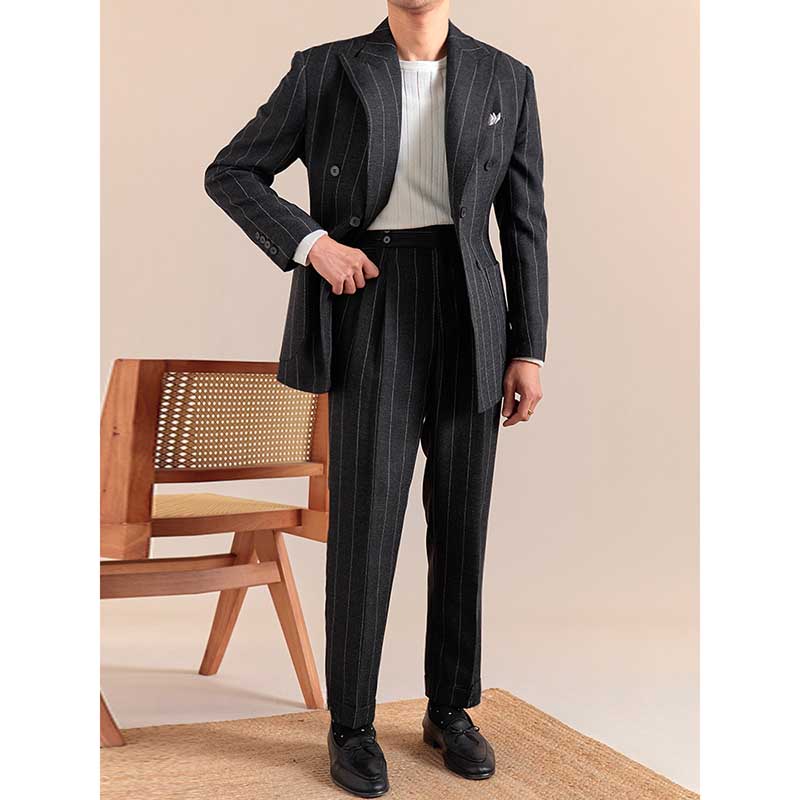 Italian Style Double Button Striped Suit Trousers