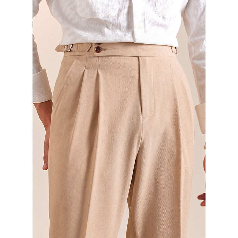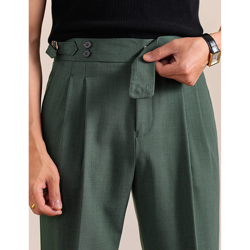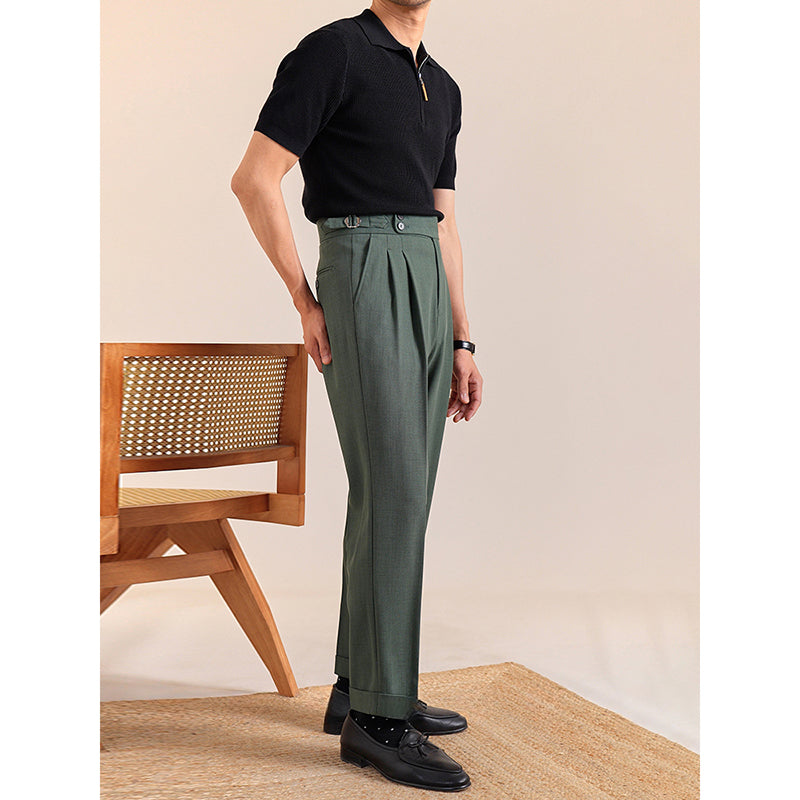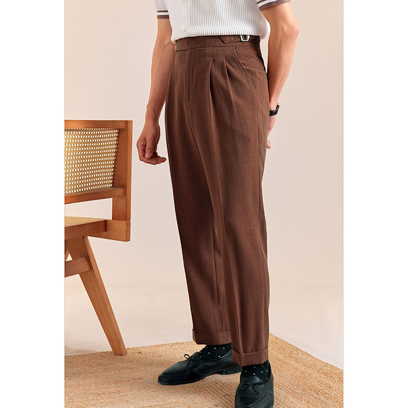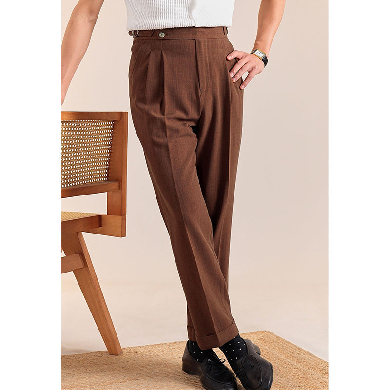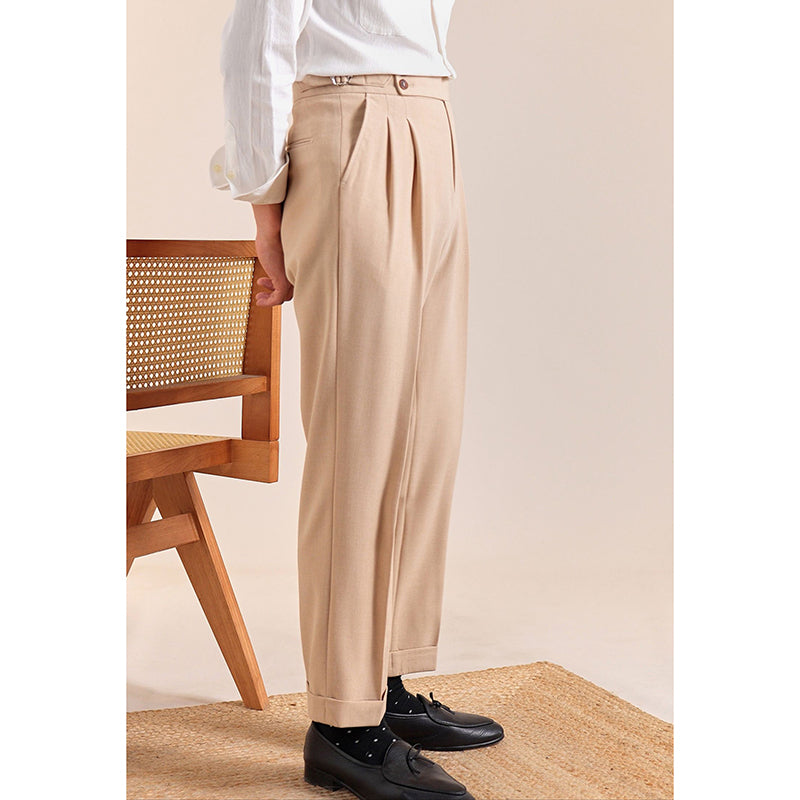 Summer Breathable Italian Double Pleated Naples Straight Trousers