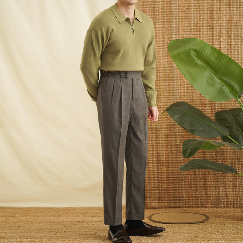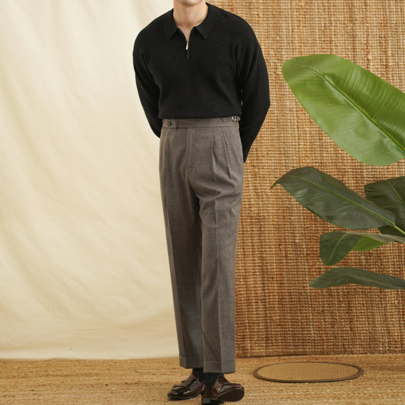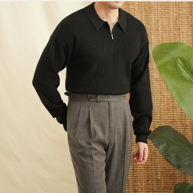 Men's Lapel Half Zip Sweater Casual Loose Knit Sweater