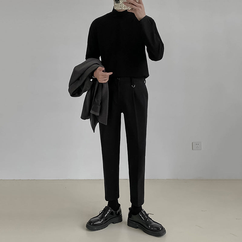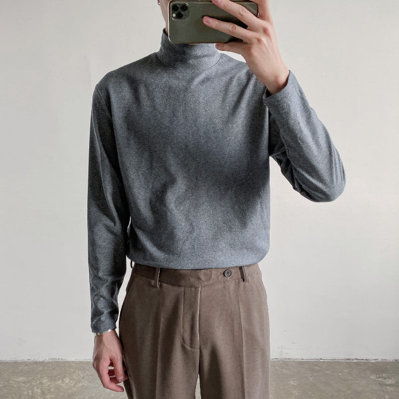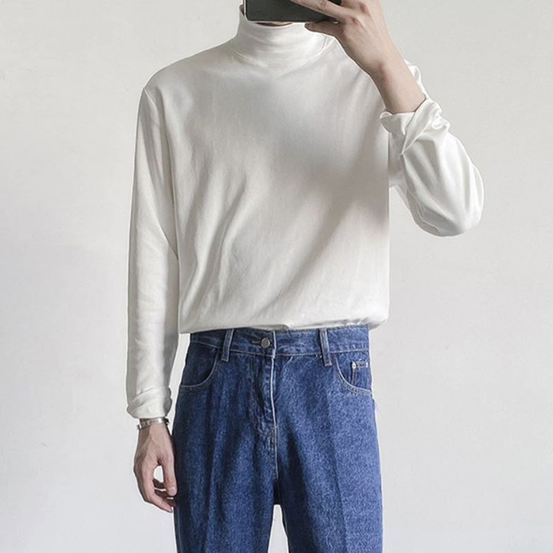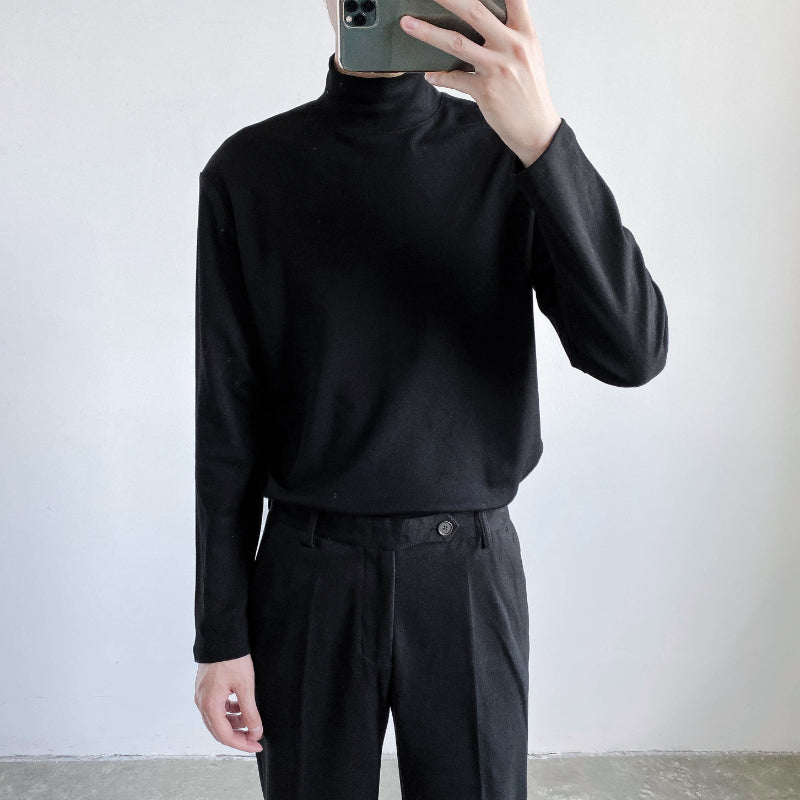 Men's Loose Half Turtleneck Solid Color Casual Bottoming Shirt