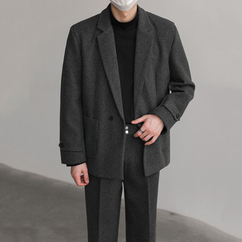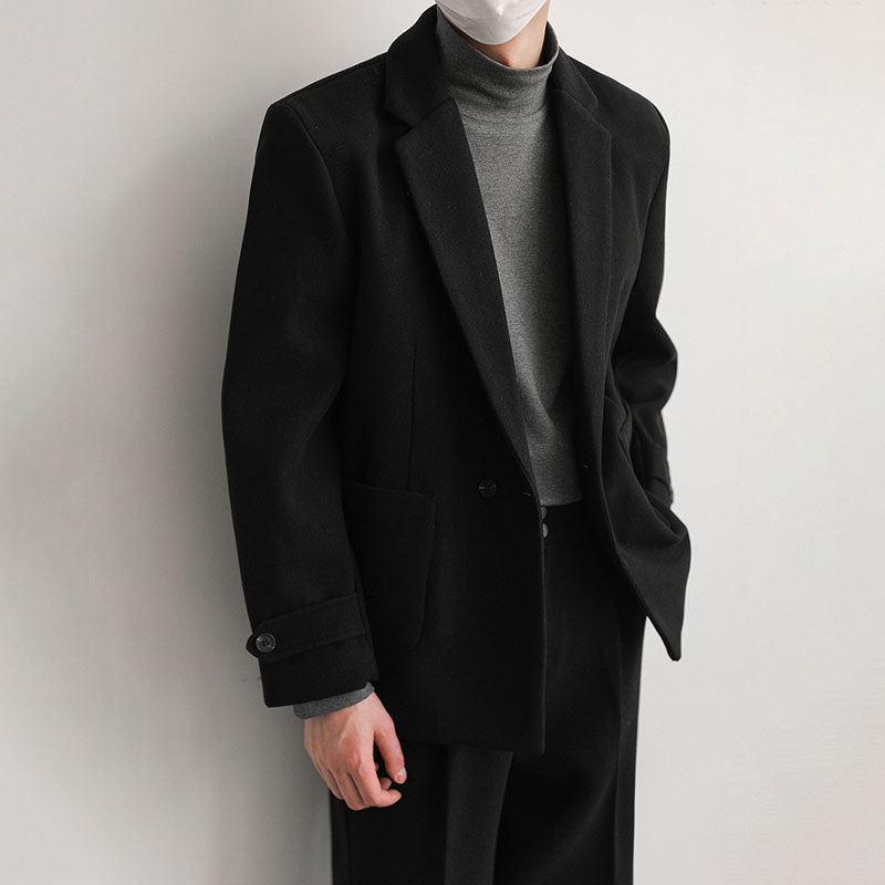 Loose Solid Color Thick Wool Suit Coat