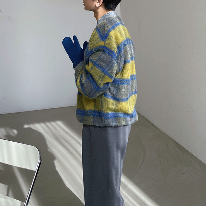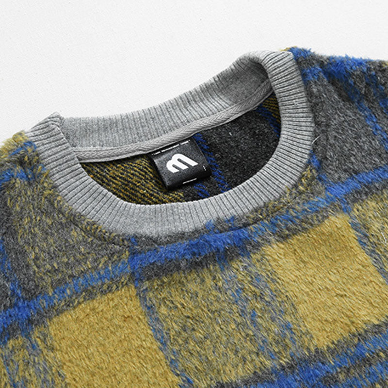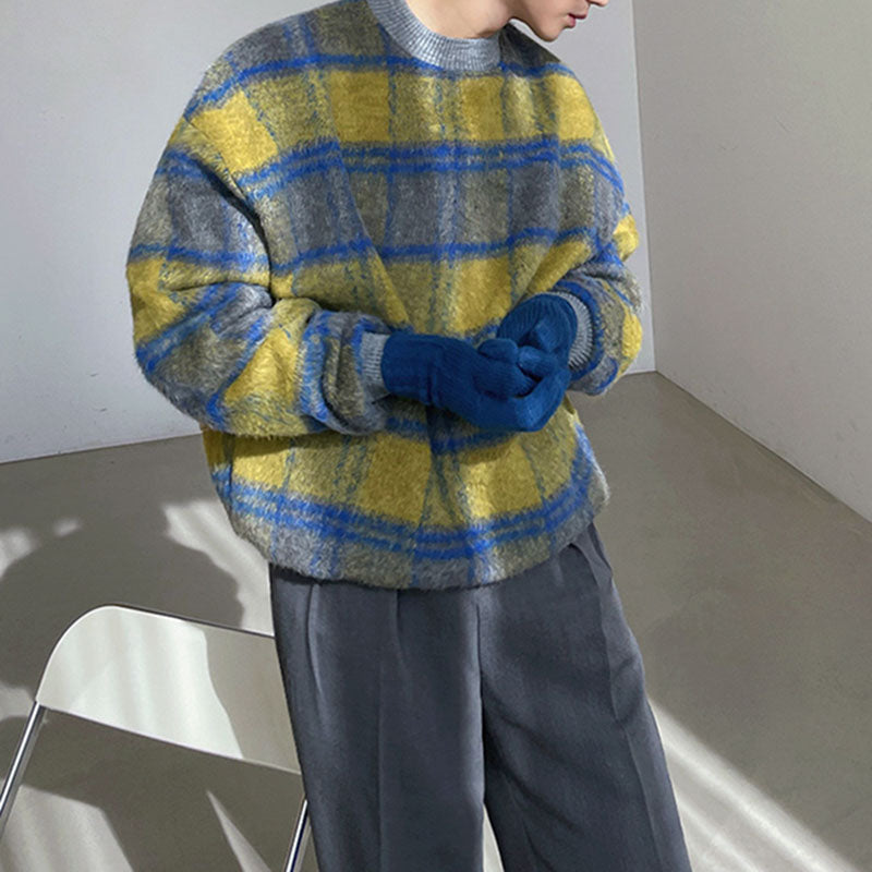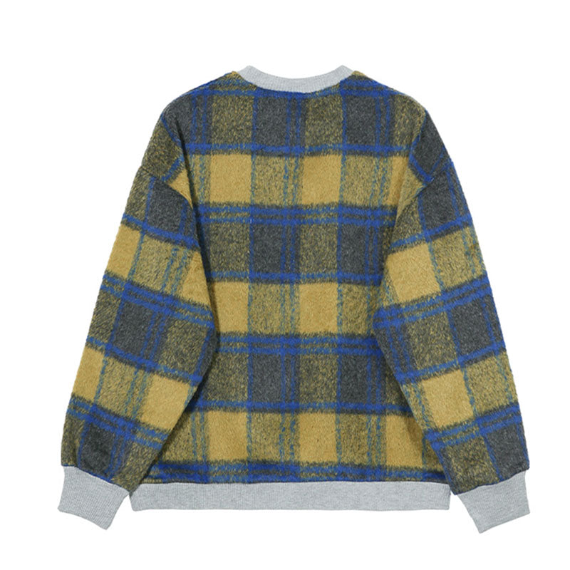 Men's Loose Spliced Round Neck Plaid Casual Sweatshirt