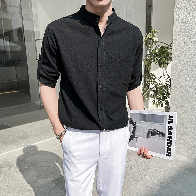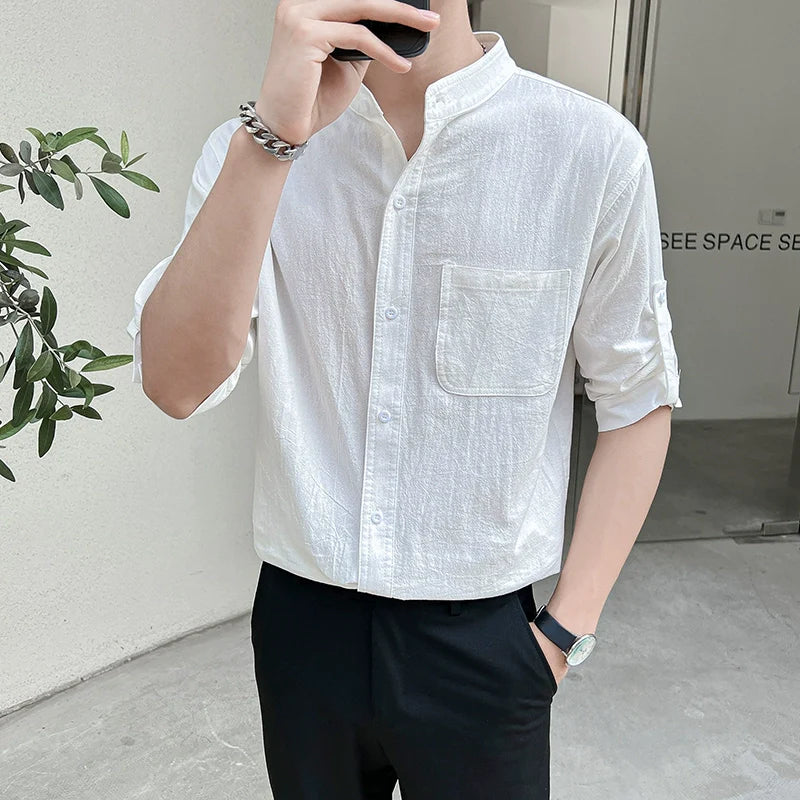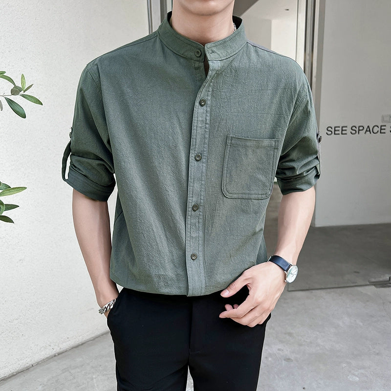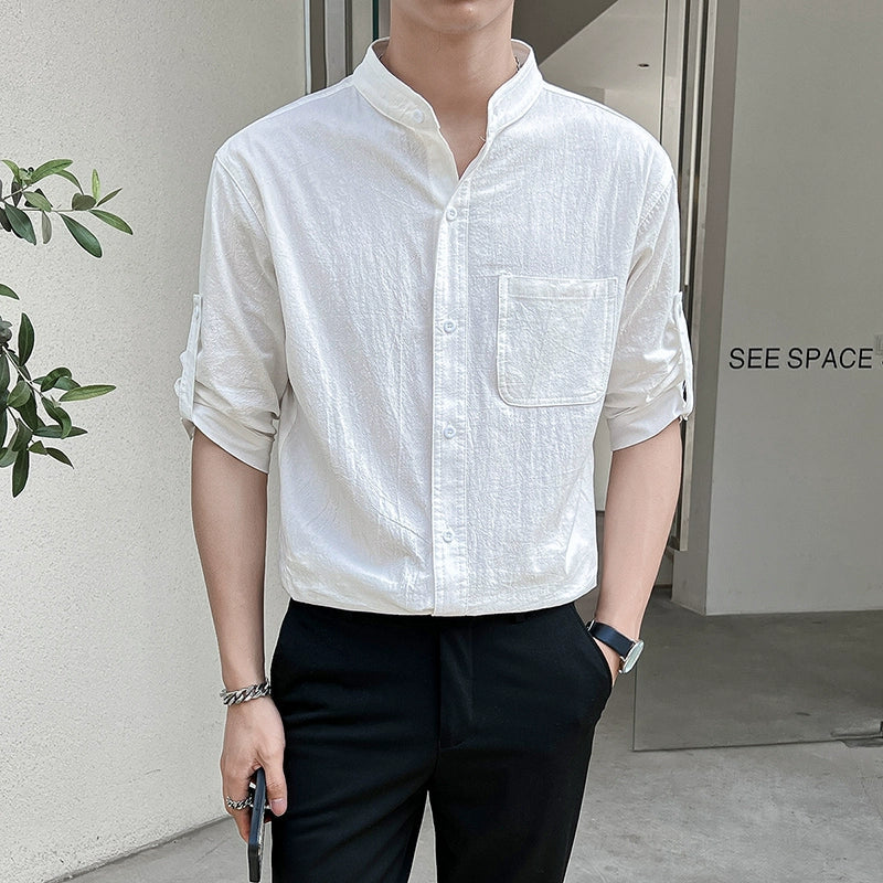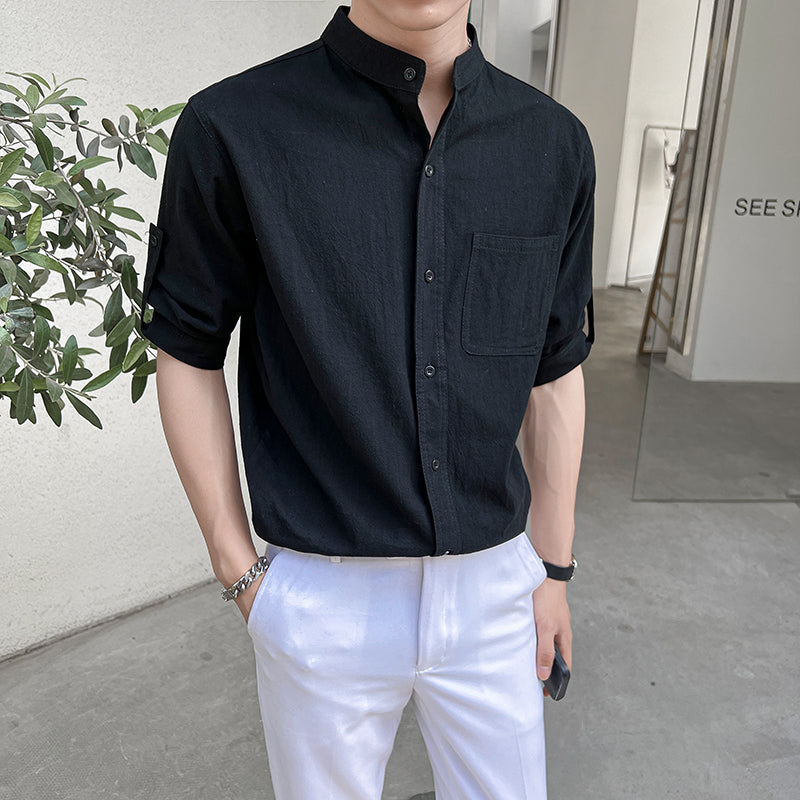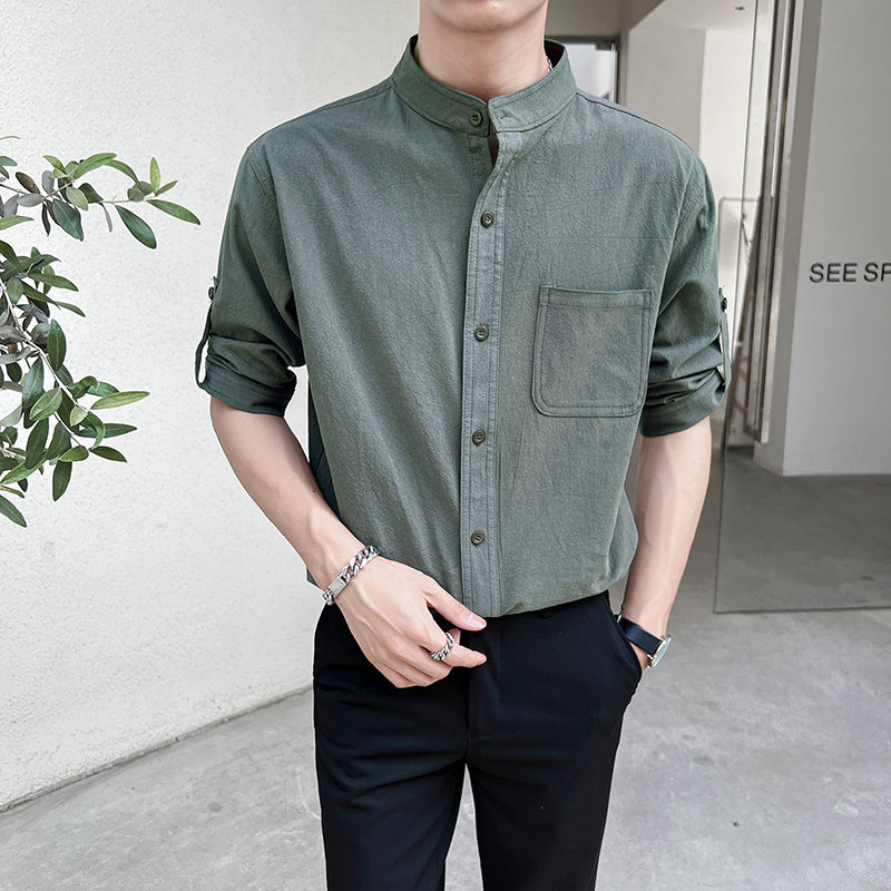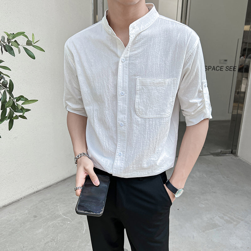Men's Loose Three-quarter Sleeves Stand Collar Casual Shirt