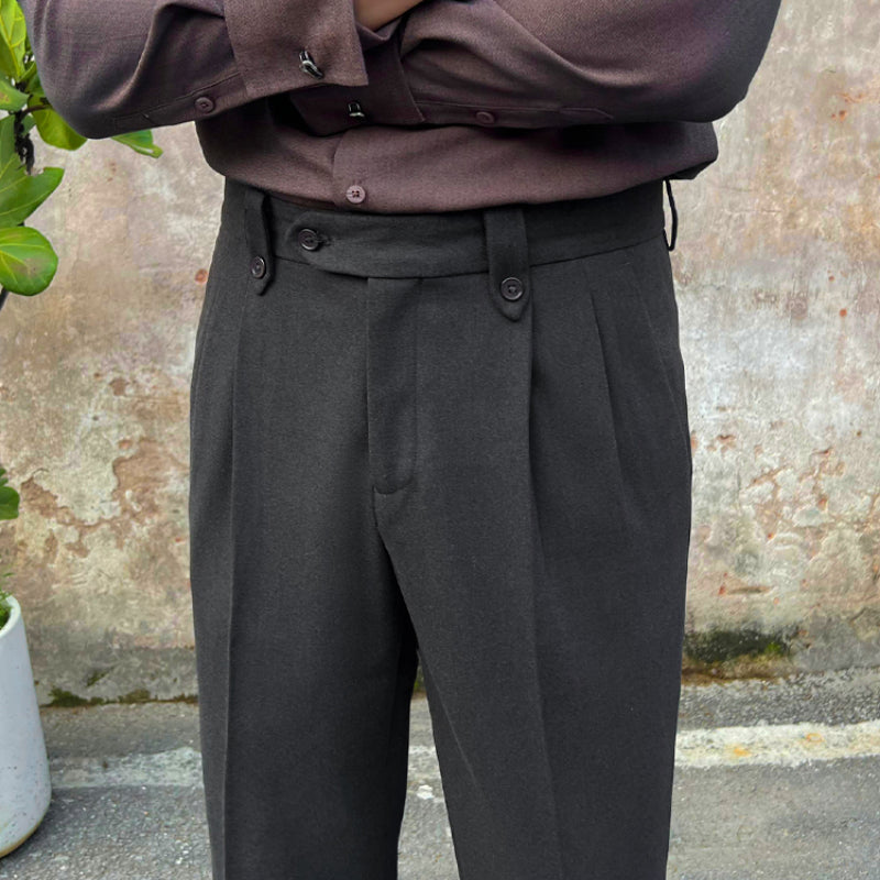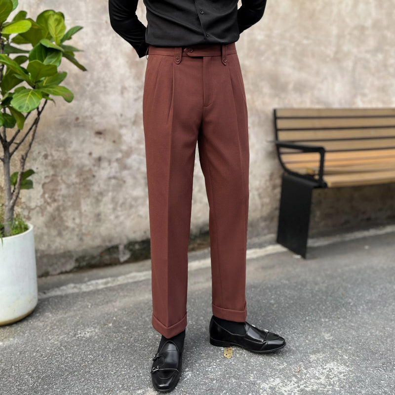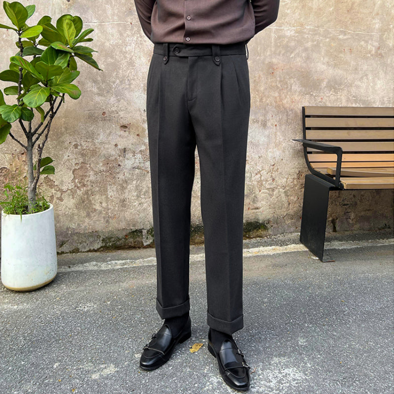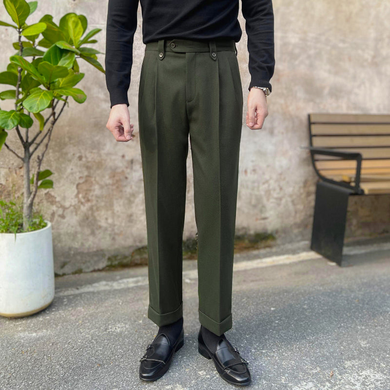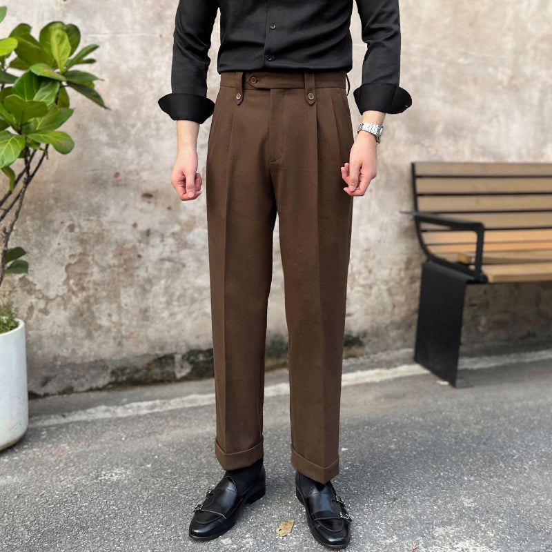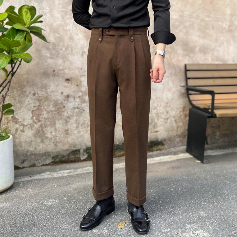 Men's Casual Business Slim British Retro Straight High Waist Pants