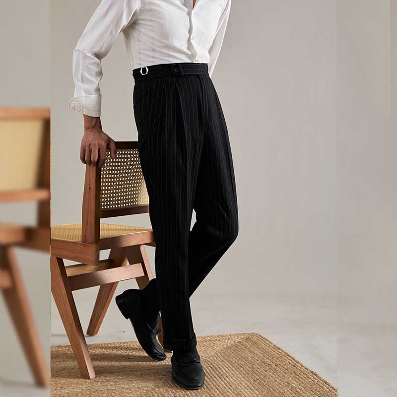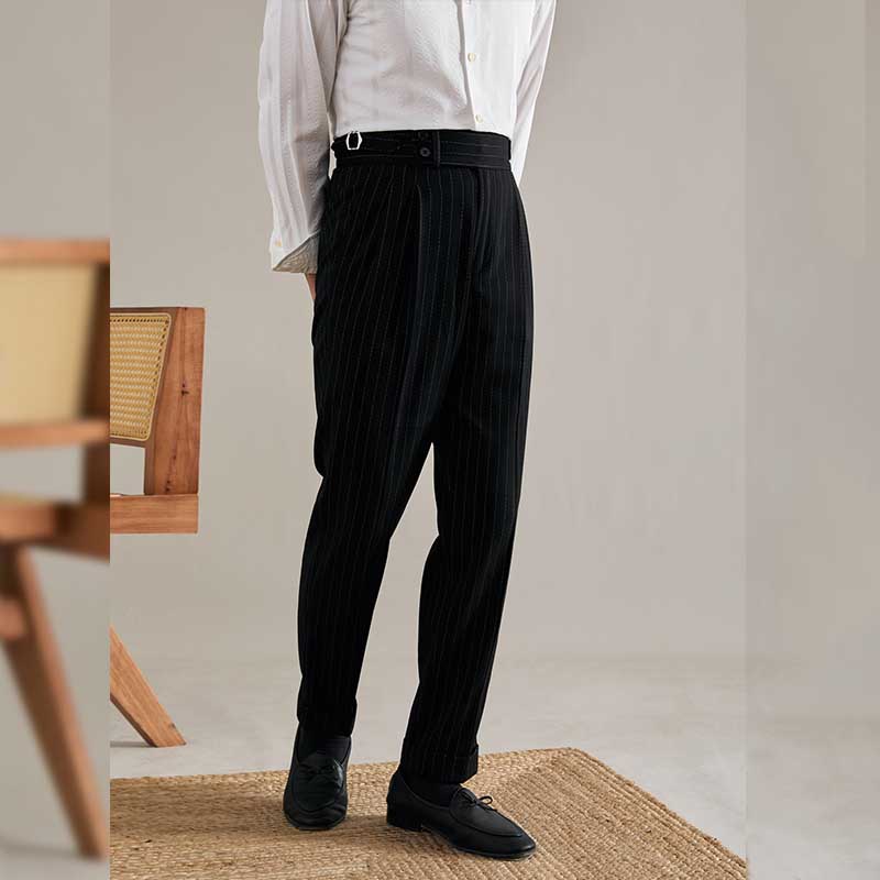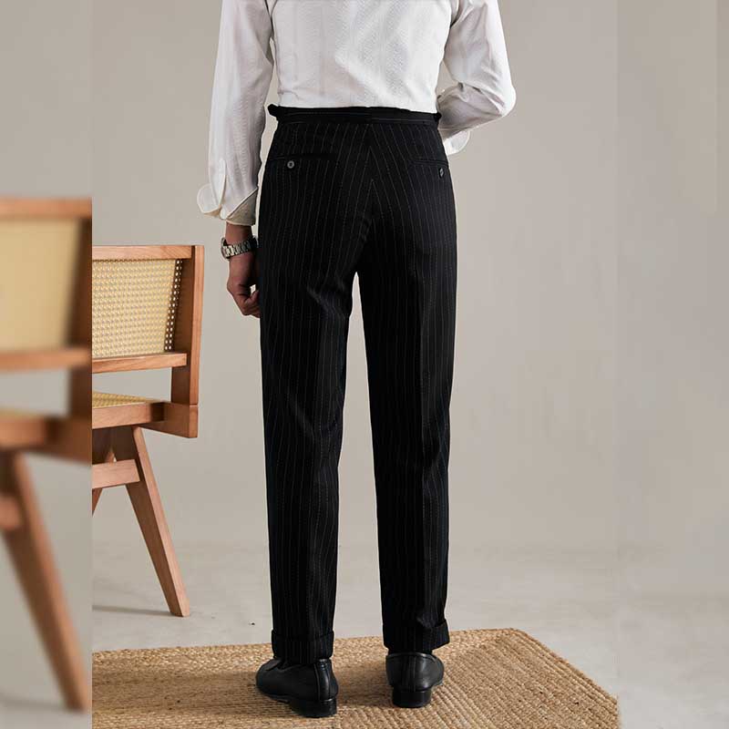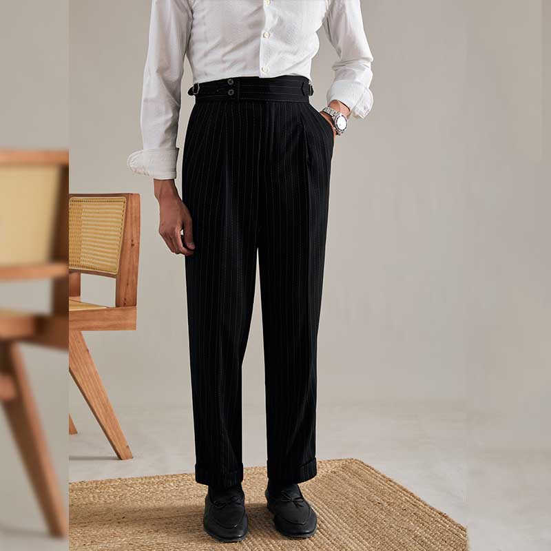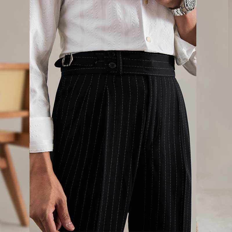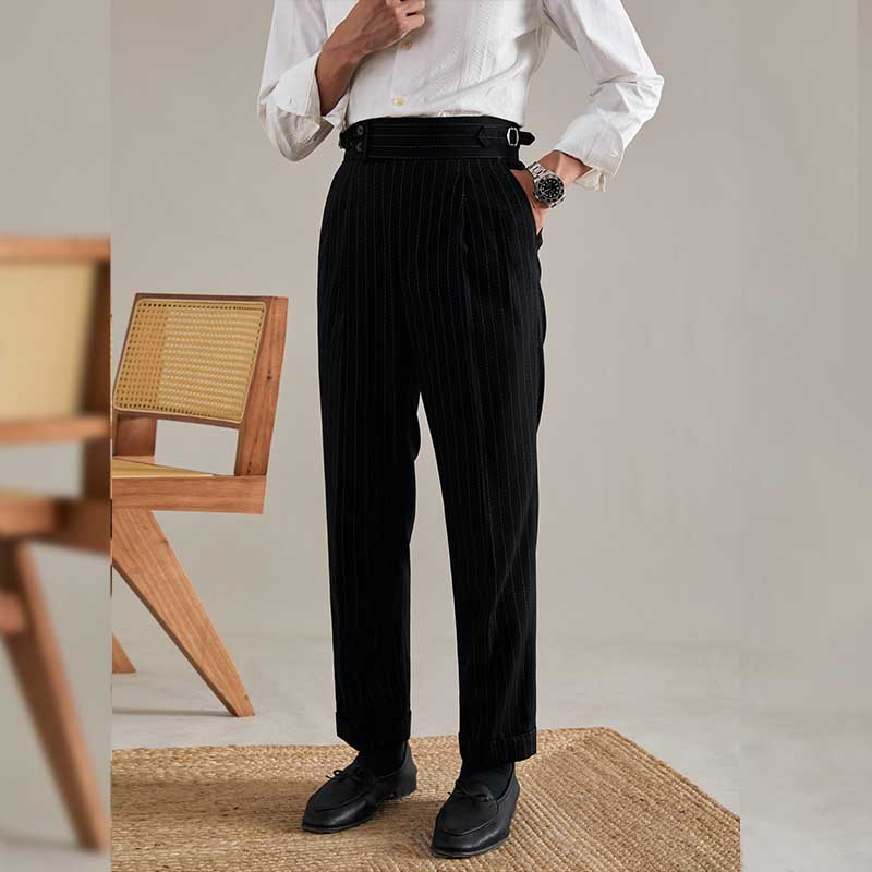 Men's High Waisted Pants Double-button Striped Casual Trousers