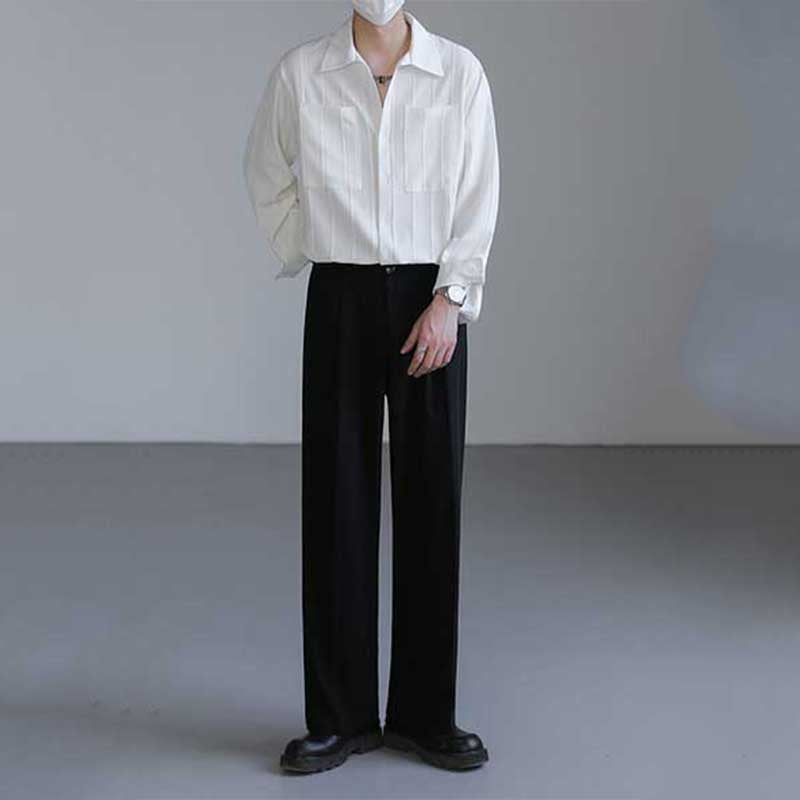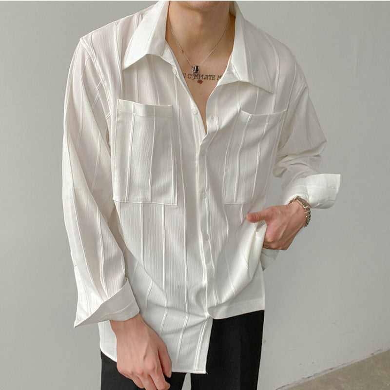 Men's Lapel Solid Color Casual Long Sleeve Shirt