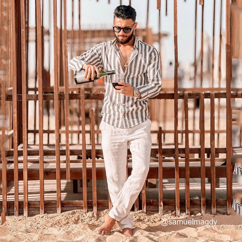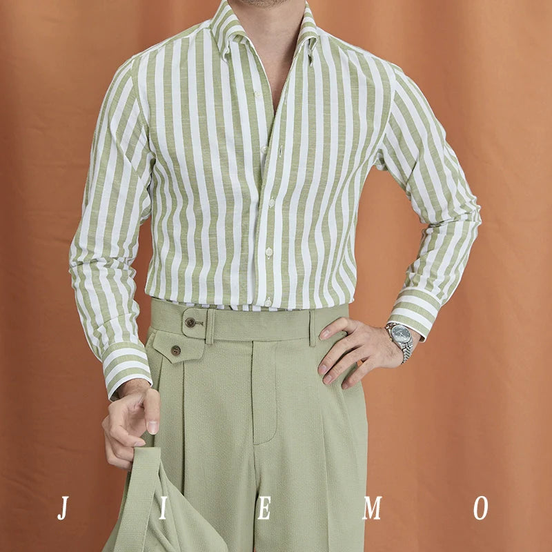 Men's Striped British Business Long Sleeve Shirt