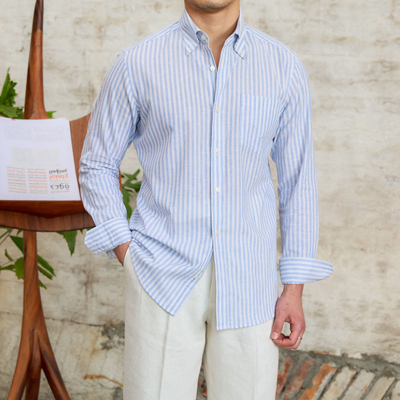 Men's Summer Striped Cotton Linen Long Sleeve Shirt