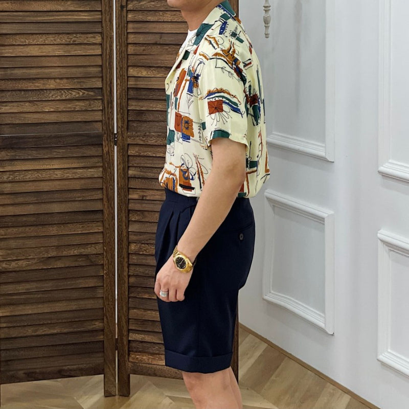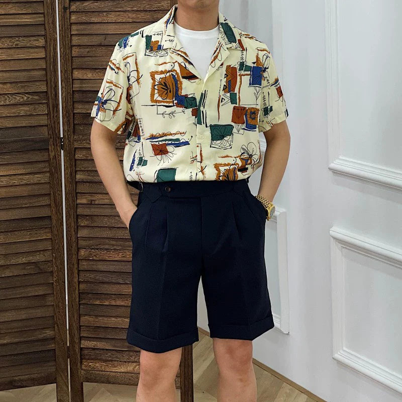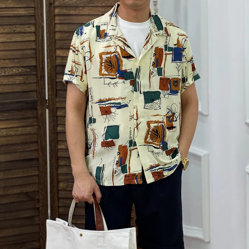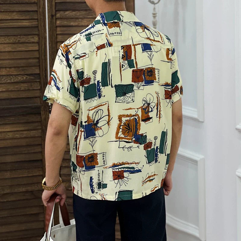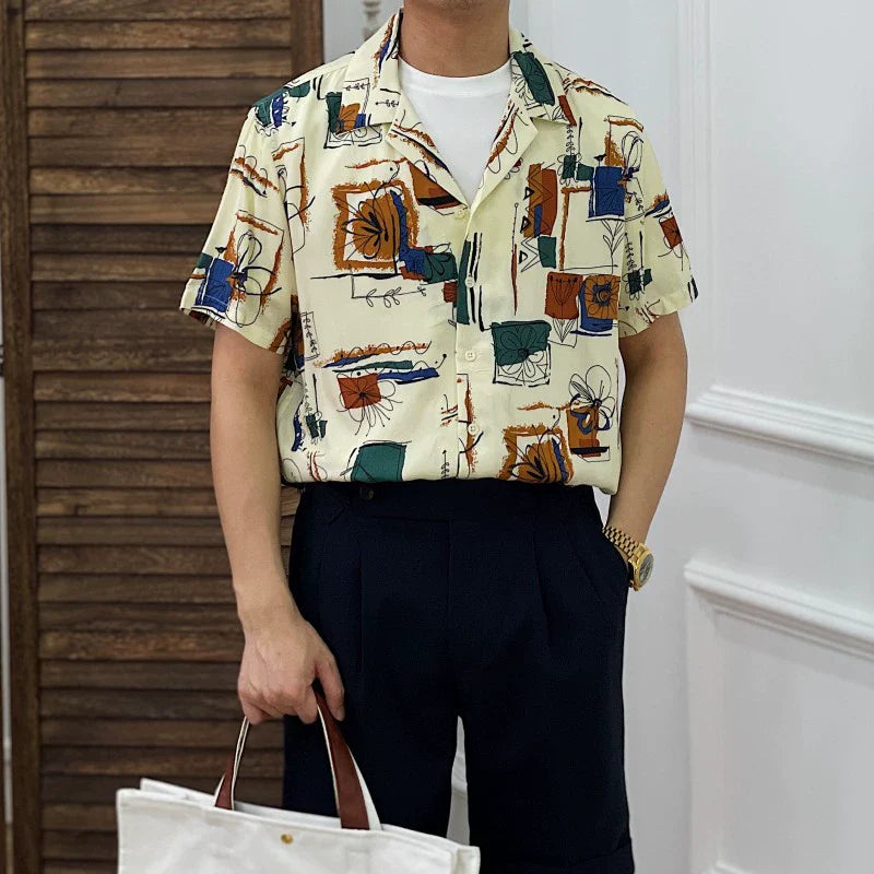 Men's Vintage Cuban Collar Graffiti Casual Short Sleeve Shirt