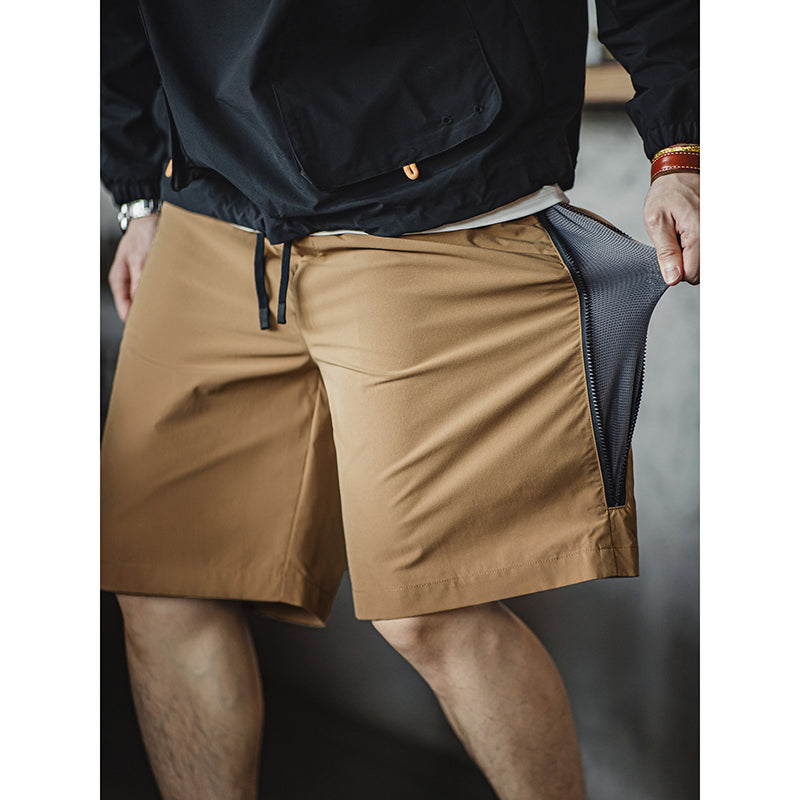 Patchwork Zippered Straight Shorts