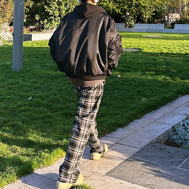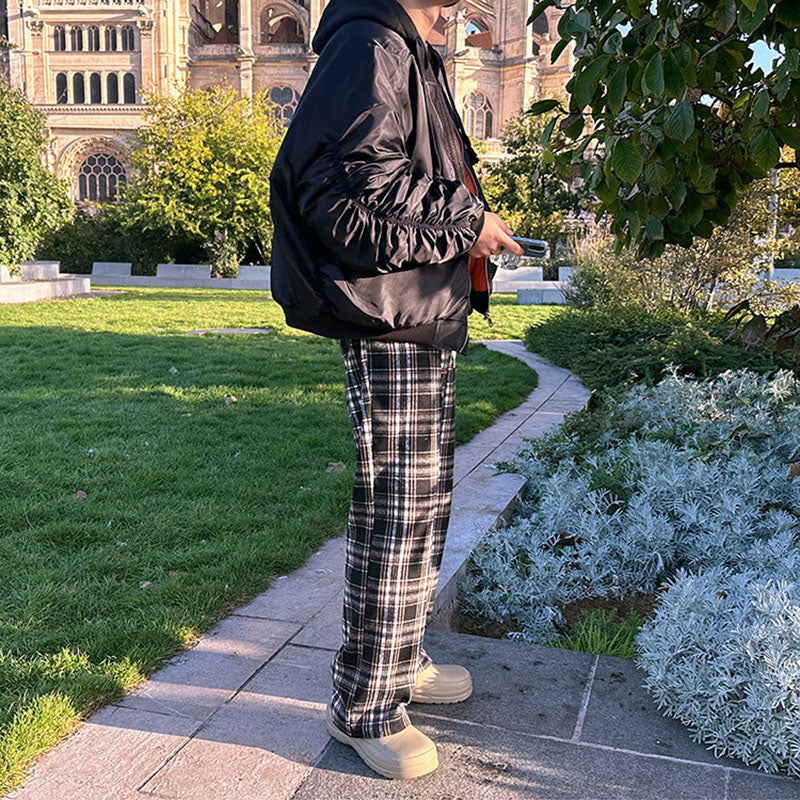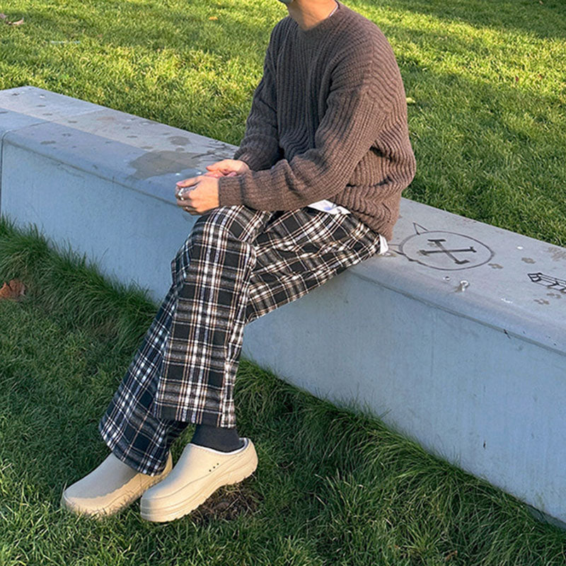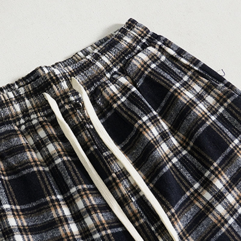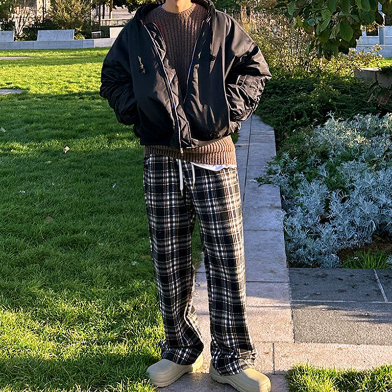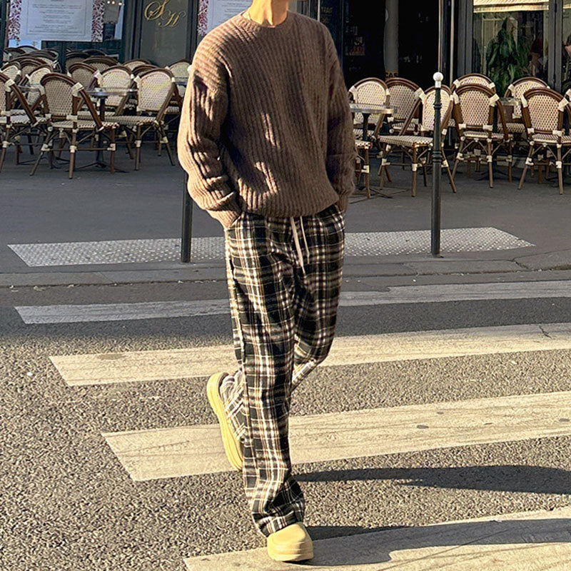 Men's Retro Casual Plaid Loose Straight Wide Leg Pants