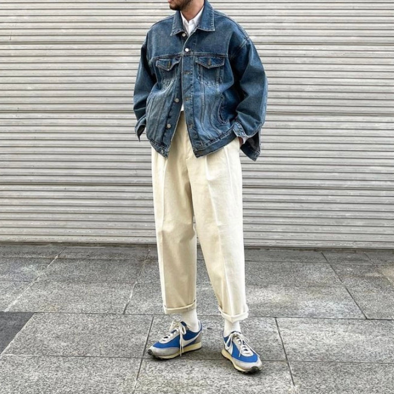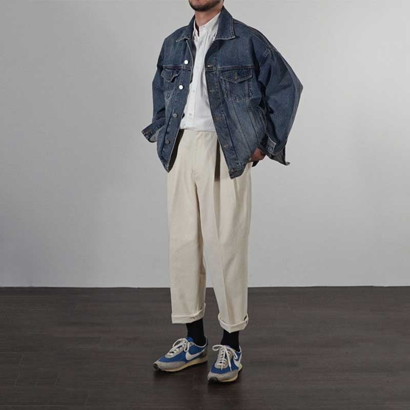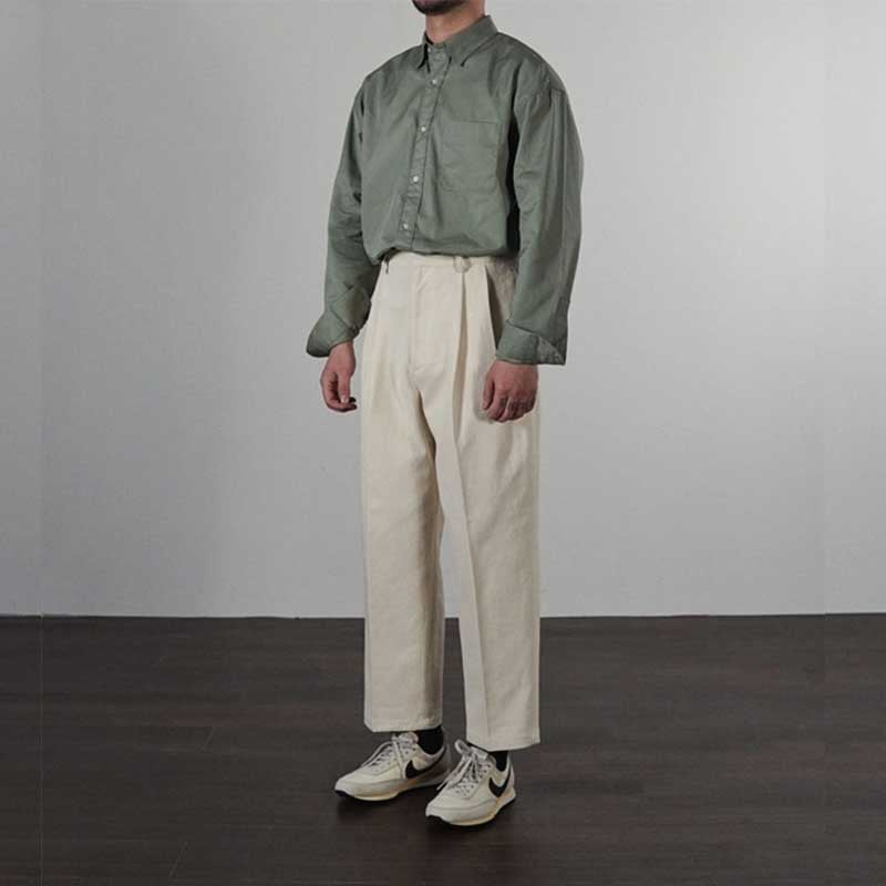 Mens Retro Casual Versatile Elastic Waist Wide Leg Pants