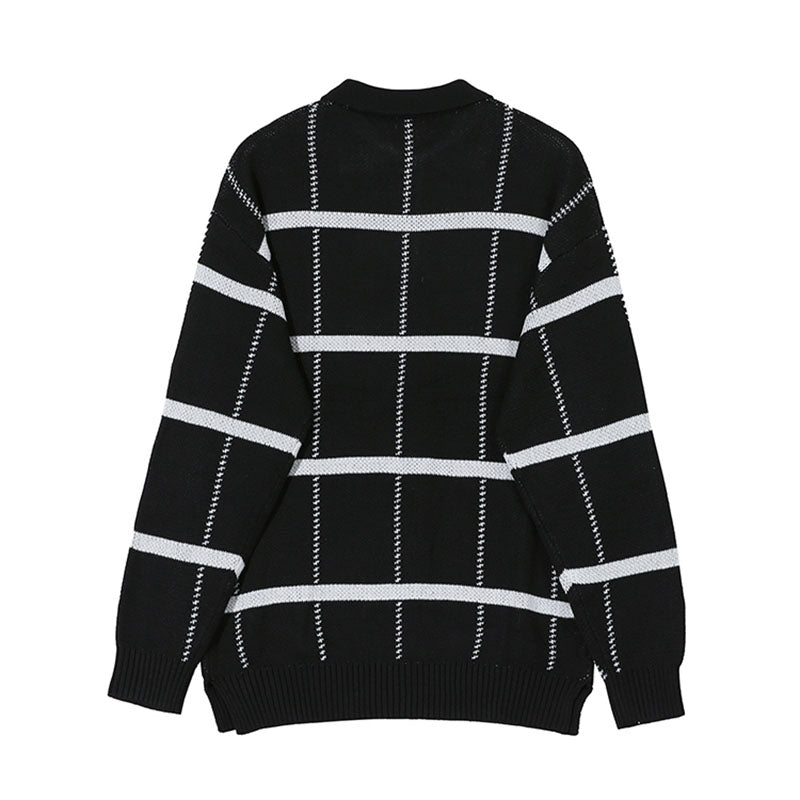 Men's Retro Lapel Plaid Loose Casual Sweater
