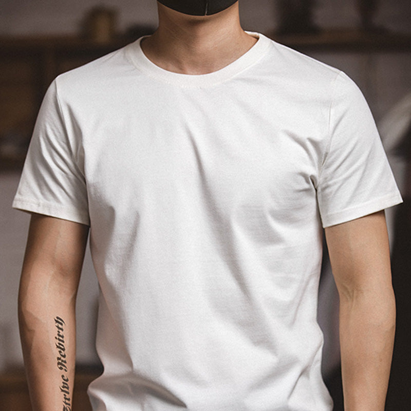 Mens Retro Short-sleeved Casual Bottoming Shirt