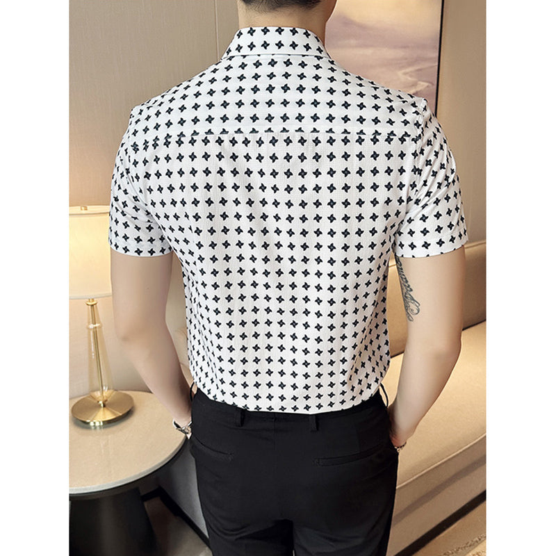 Mens Slim Fit Printed Business Short Sleeve Shirt