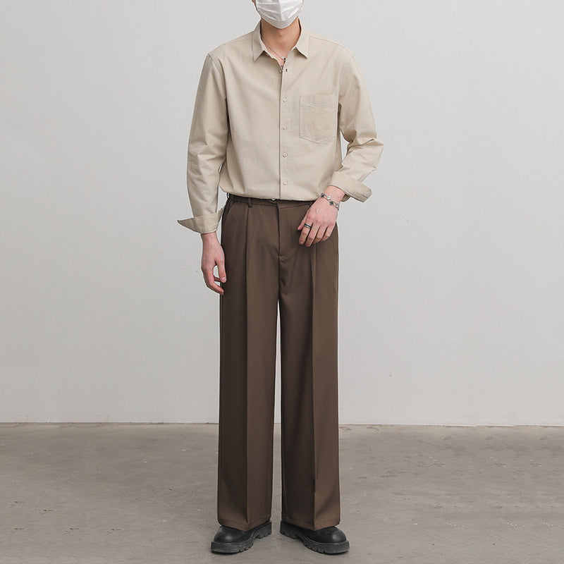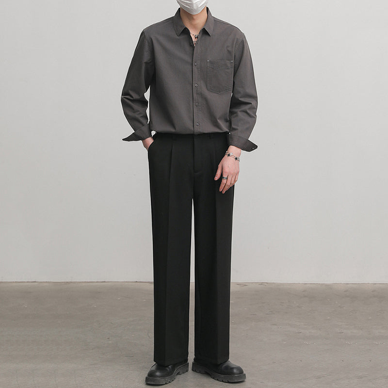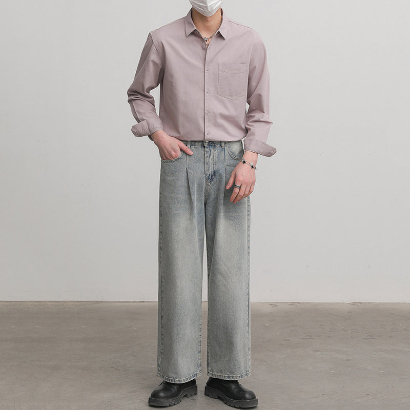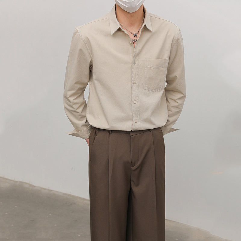 Solid Color Pointed Collar Casual Cotton Shirt