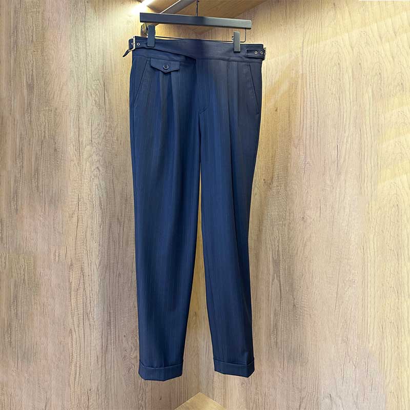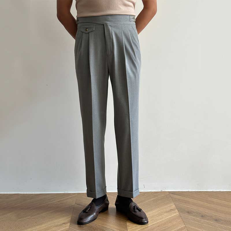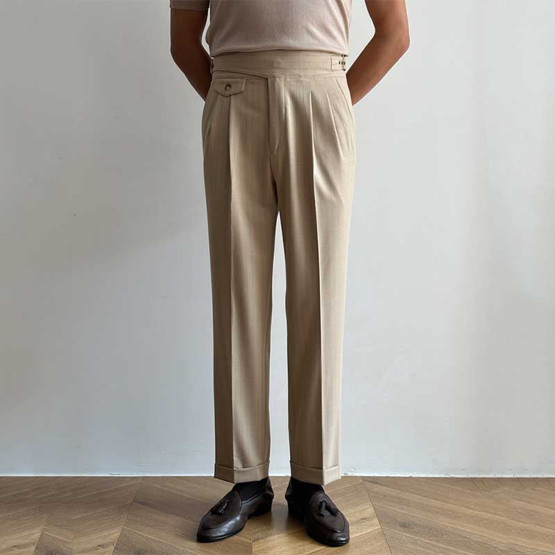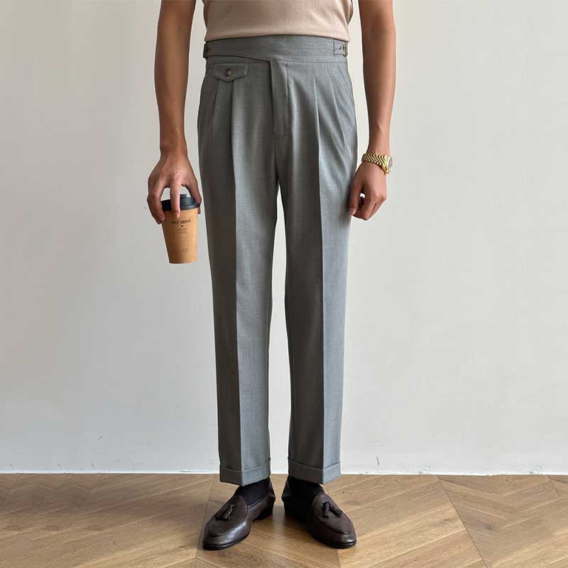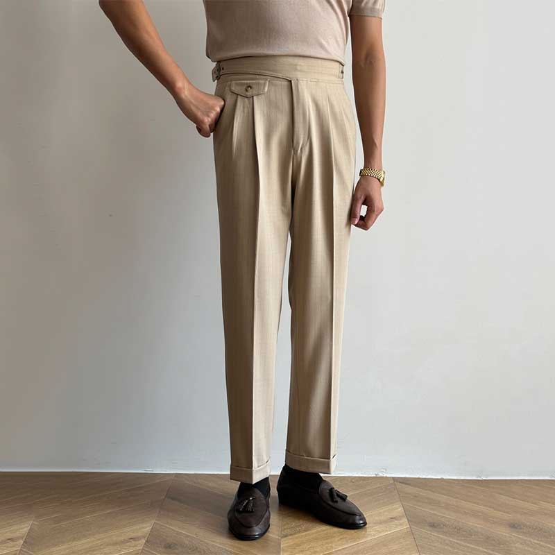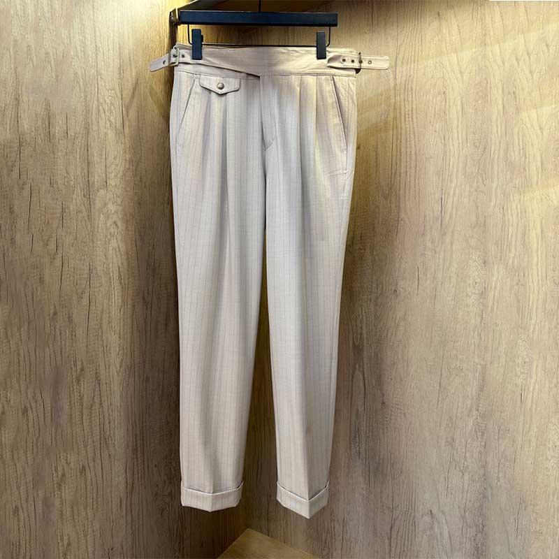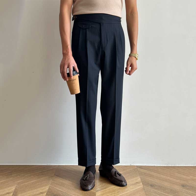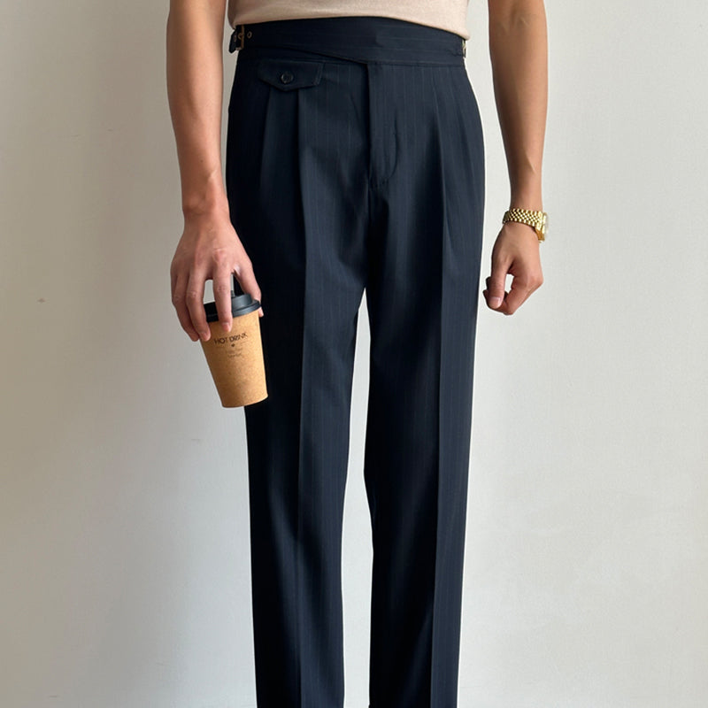 Men's High Waisted Pants Striped Straight Loose Casual Business Trousers