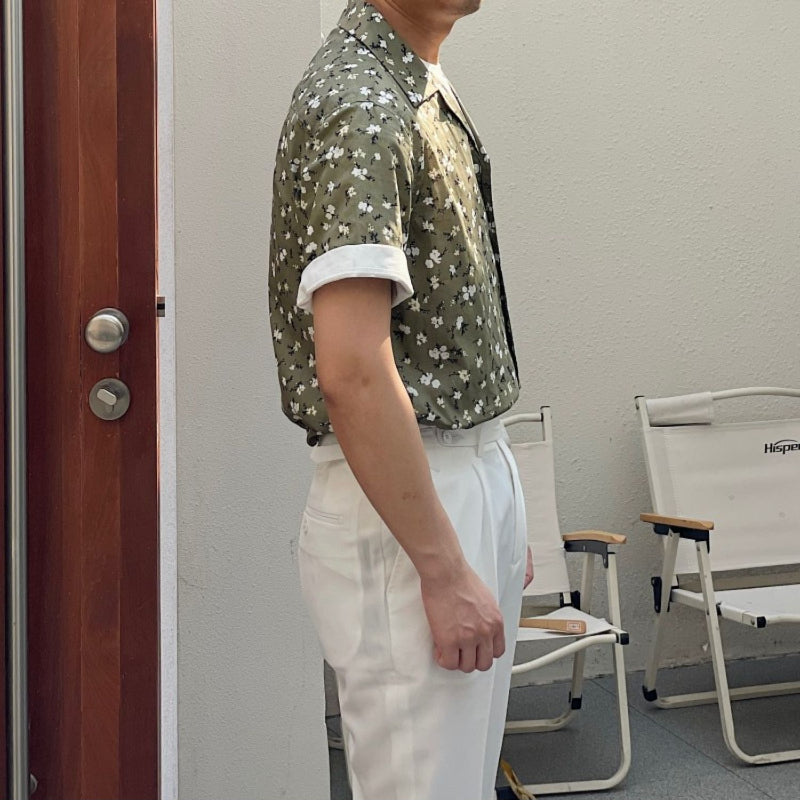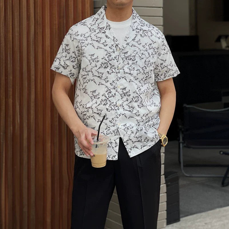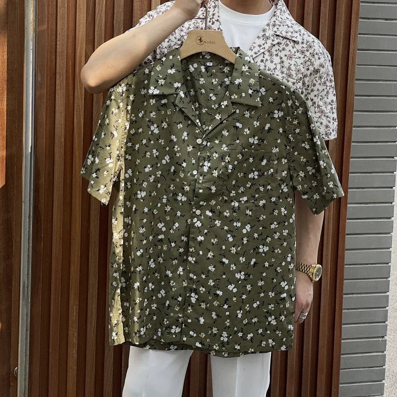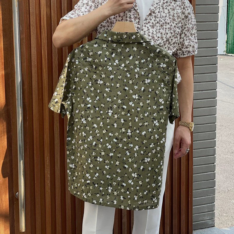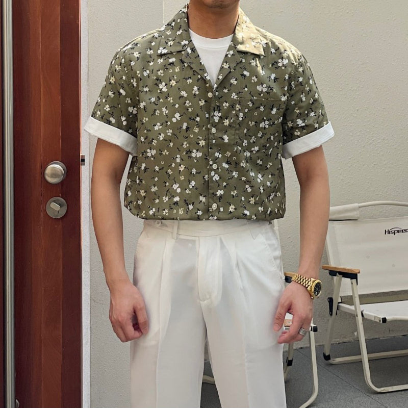 Mens Summer Cuban Collar Retro Short-sleeved Floral Shirt