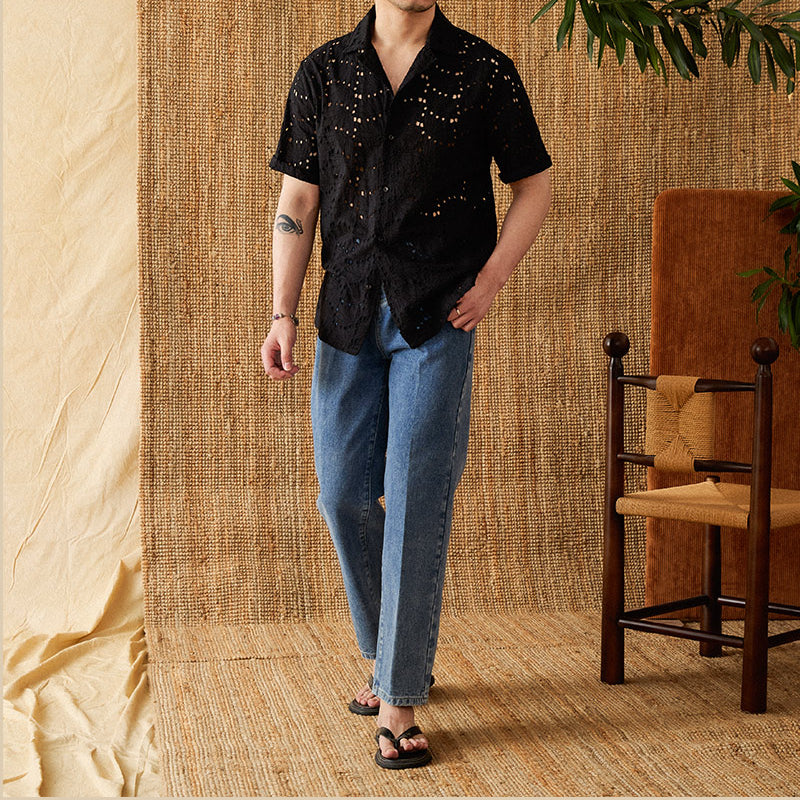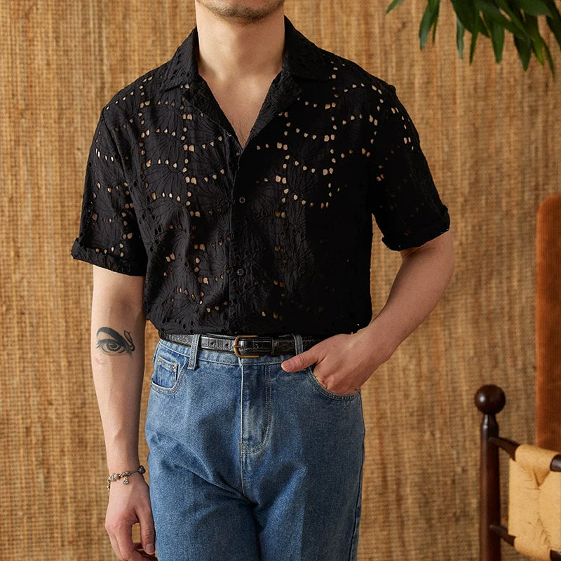 Summer Thin Breathable Hollow Casual Short Shirt
