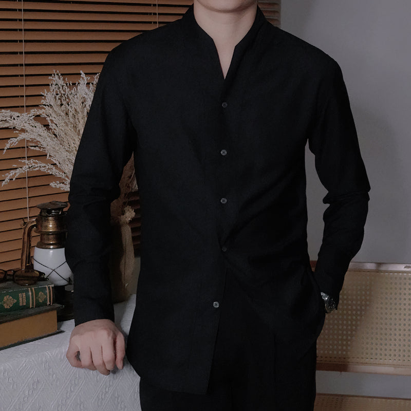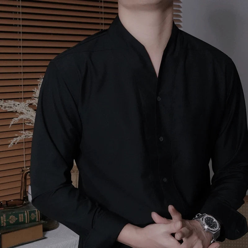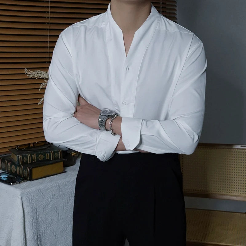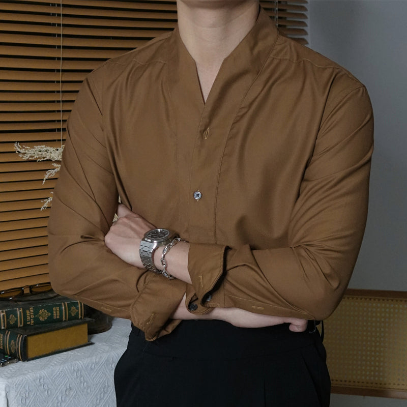 Men's V-neck Slim Fit Long Sleeve Casual Shirt