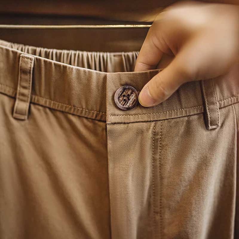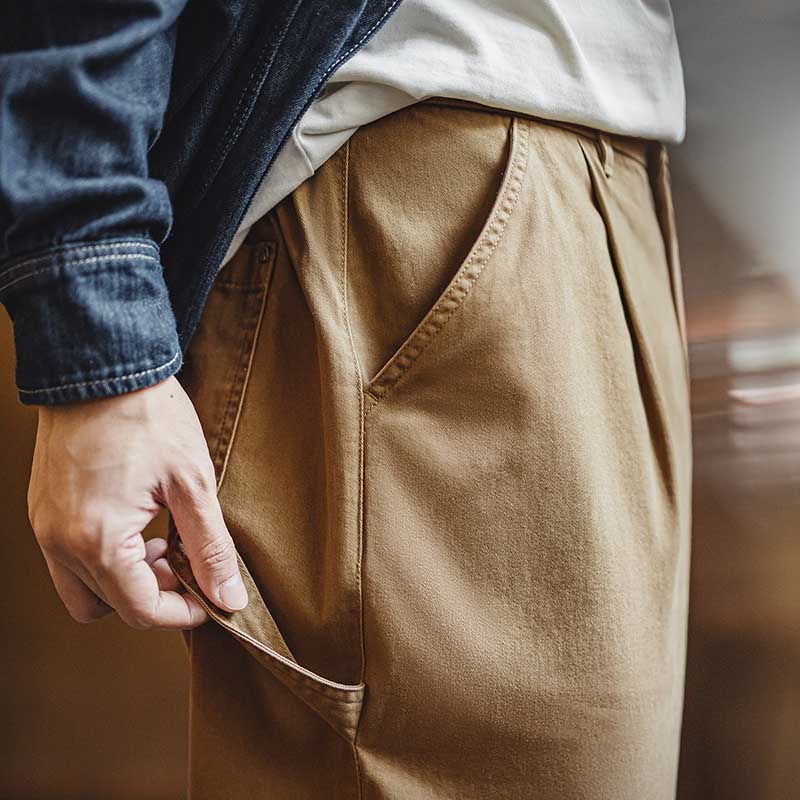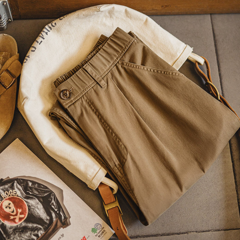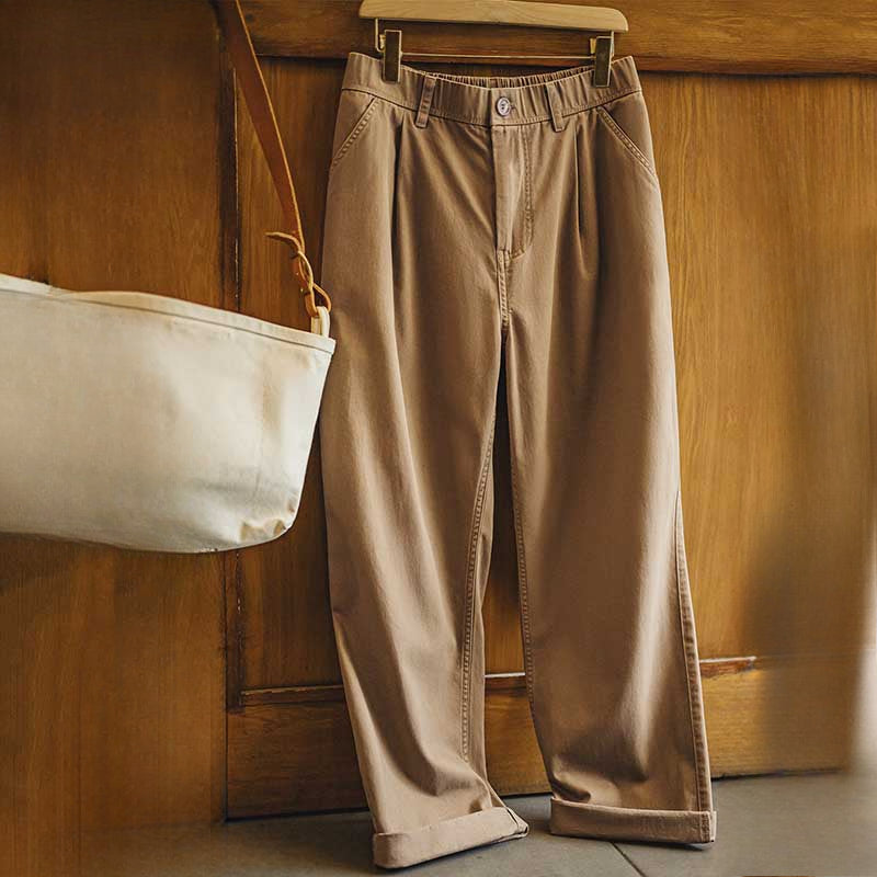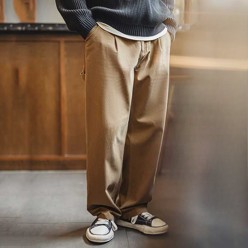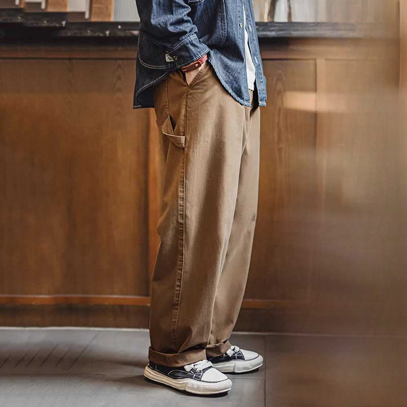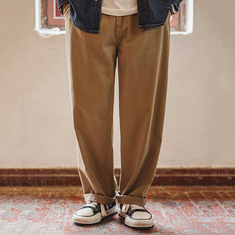 Vintage Distressed Loose Straight Cotton Twill Trousers