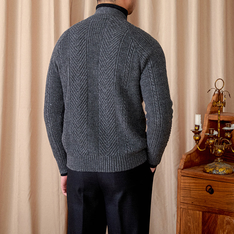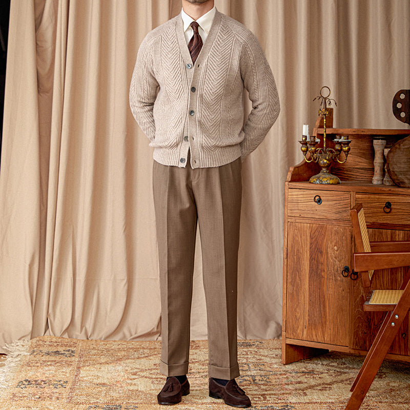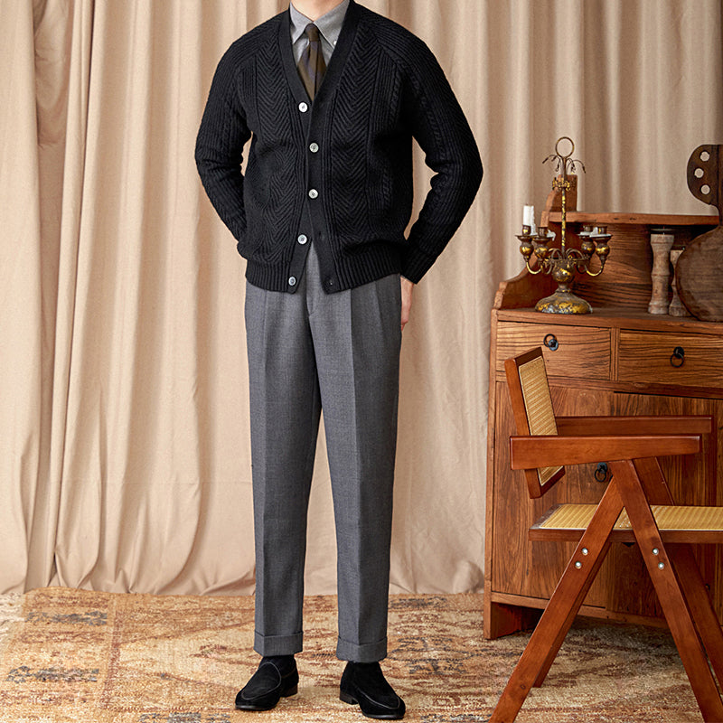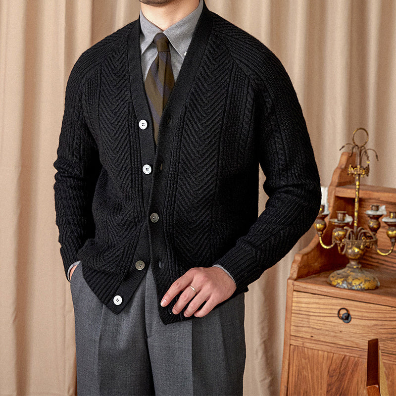Vintage Wool Jacquard Slim Fit V-Neck Cardigan